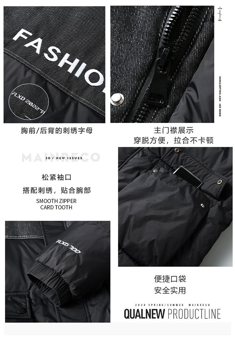Качественный джинсовый трендовый съёмный пуховик для школьников и студентов, увеличенная толщина, большой размер
