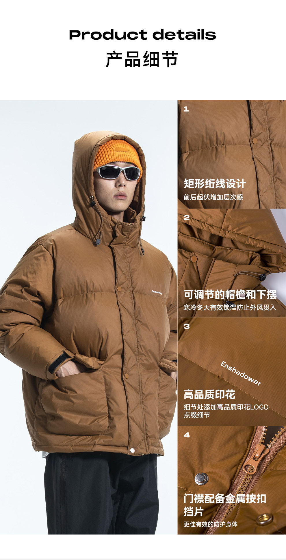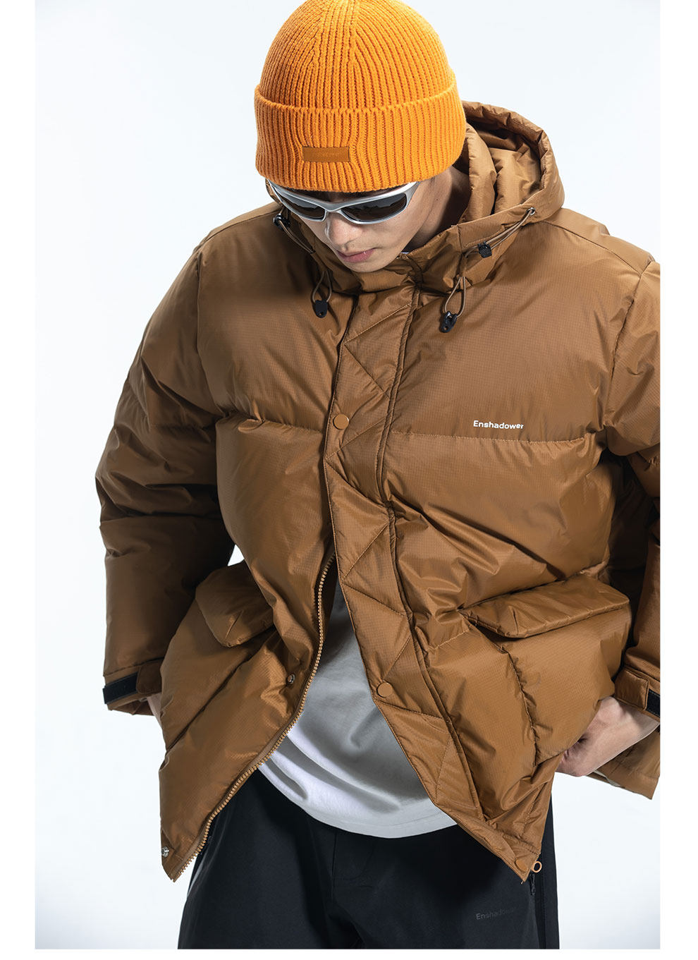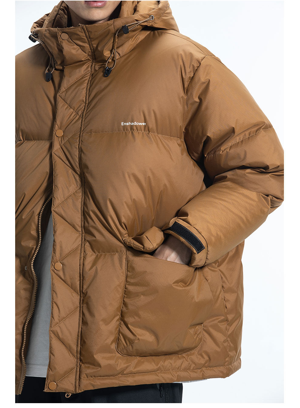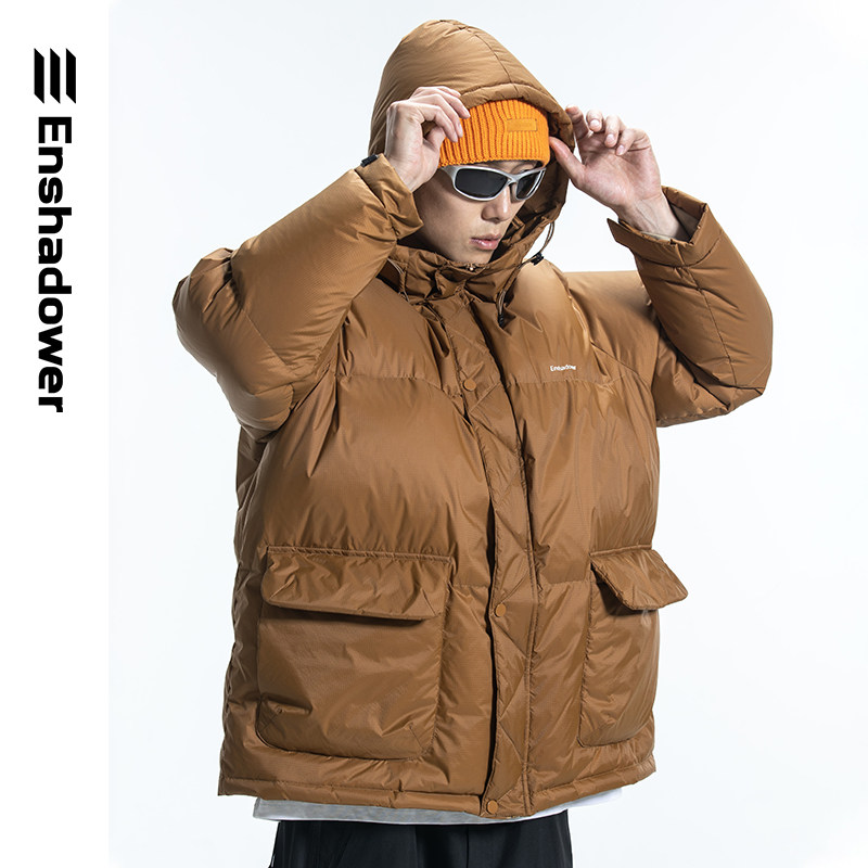 ENshadower Демисезонный пуховик, удерживающая тепло бархатная куртка, свободный крой, утиный пух