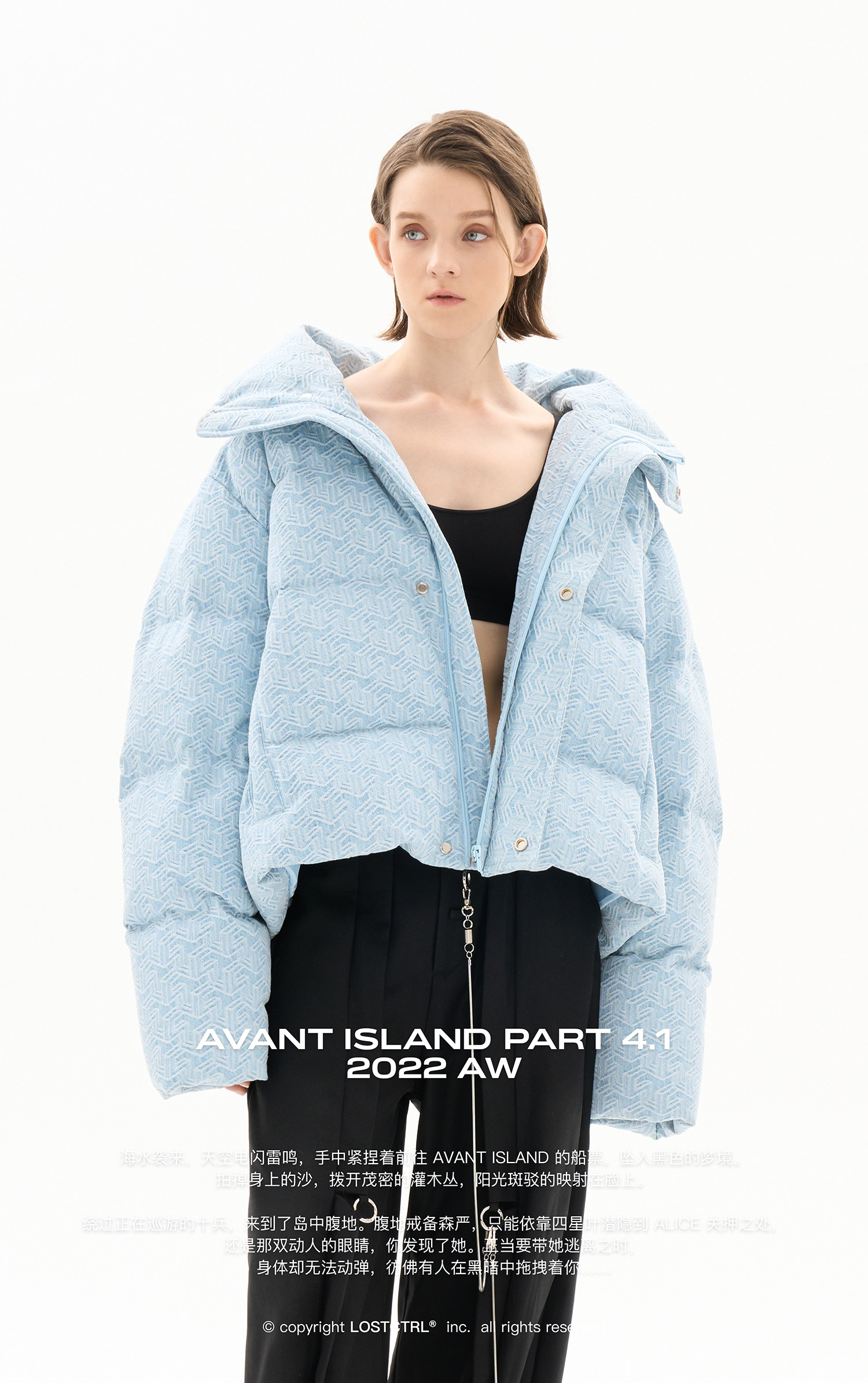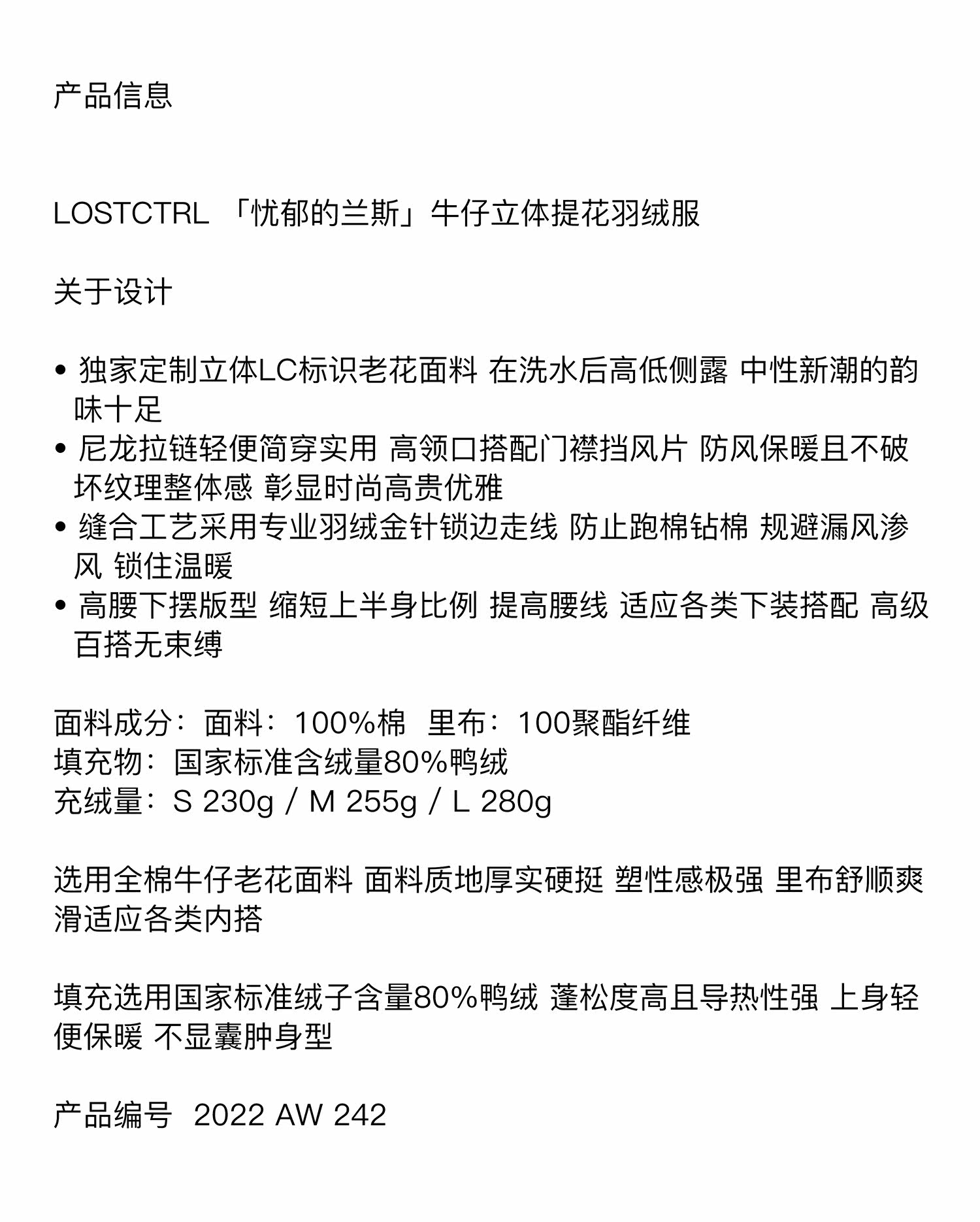 LOSTCTRL Джинсовый трехмерный демисезонный пуховик, куртка