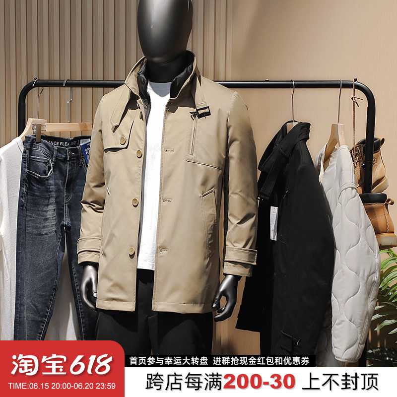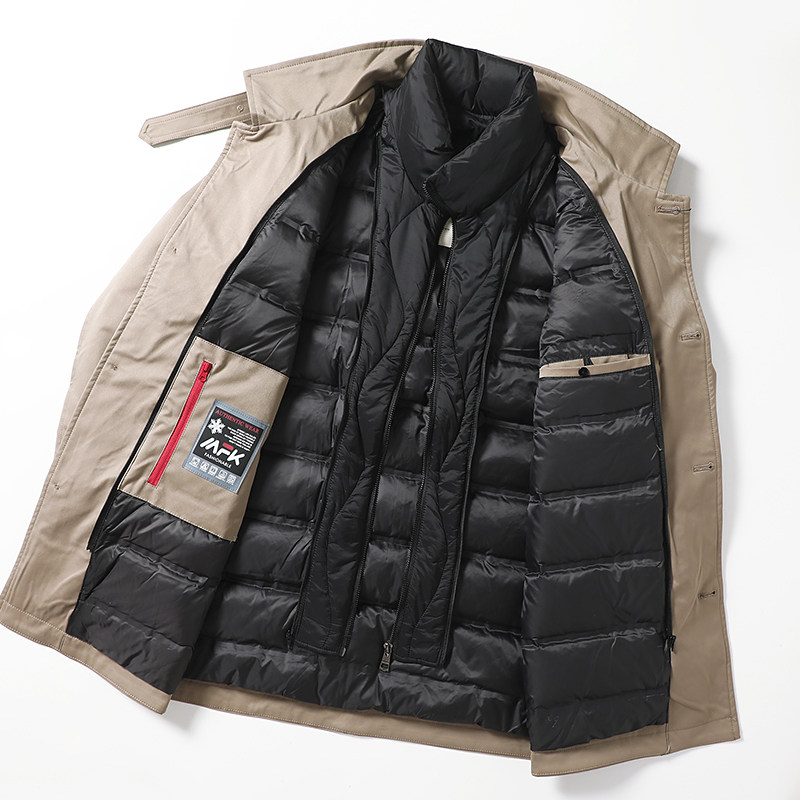 Плащ, съемный пуховик, мужской демисезонный комплект, длинная куртка, средней длины