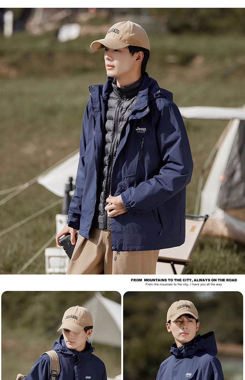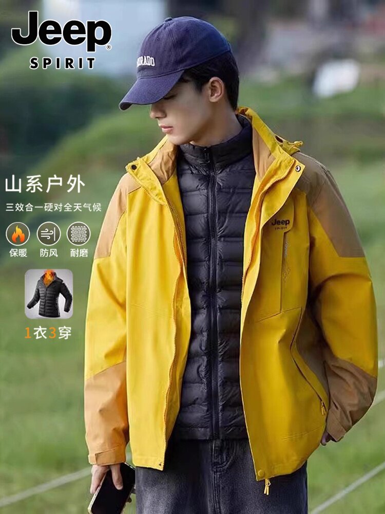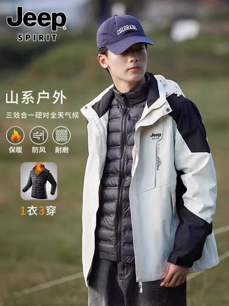 JEEP SPIRIT Зимняя бархатная мужская куртка с пухом, «три в одном», увеличенная толщина, для влюбленных