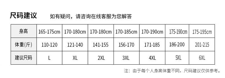 | Размер: | M Рекомендация [90-100 Catties], L рекомендуется [110-120 Catties], XL рекомендует [121-140 Catties], 2xl рекомендуется [141-155 Catties], 3xl рекомендуется [156-170 Catties], 4xl рекомендуется [171-185 Catties], 5xl рекомендуется [186-200 Catties], 6xl рекомендуется [201-215 Catties] |