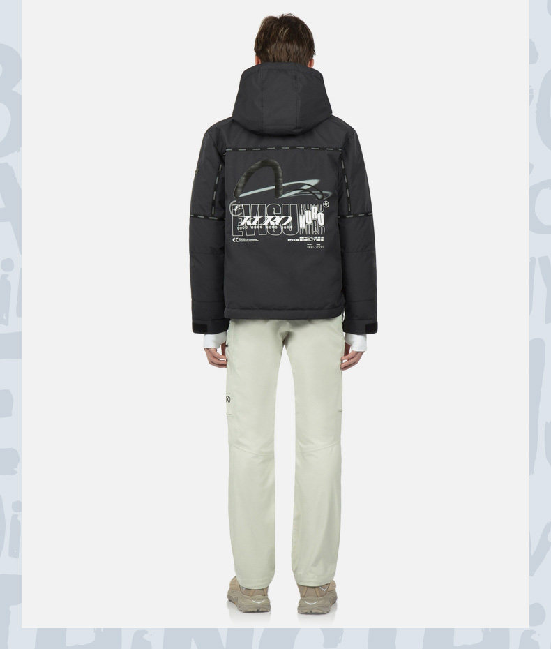 Evisu Мужской Ribples Seagull Print Теплый уток с капюшоном с капюшоном 2EAGNM3NJ5967XXPL