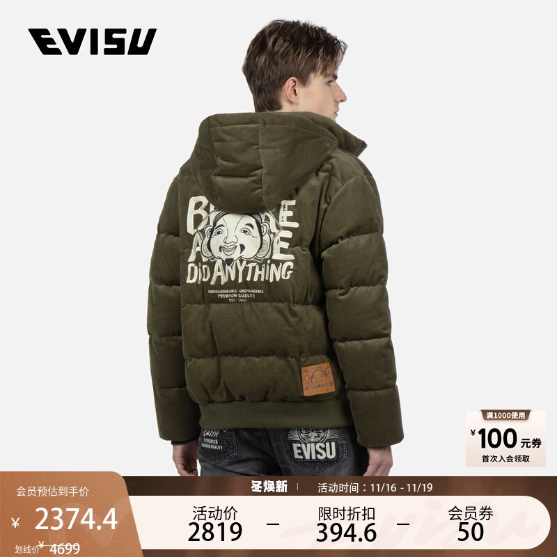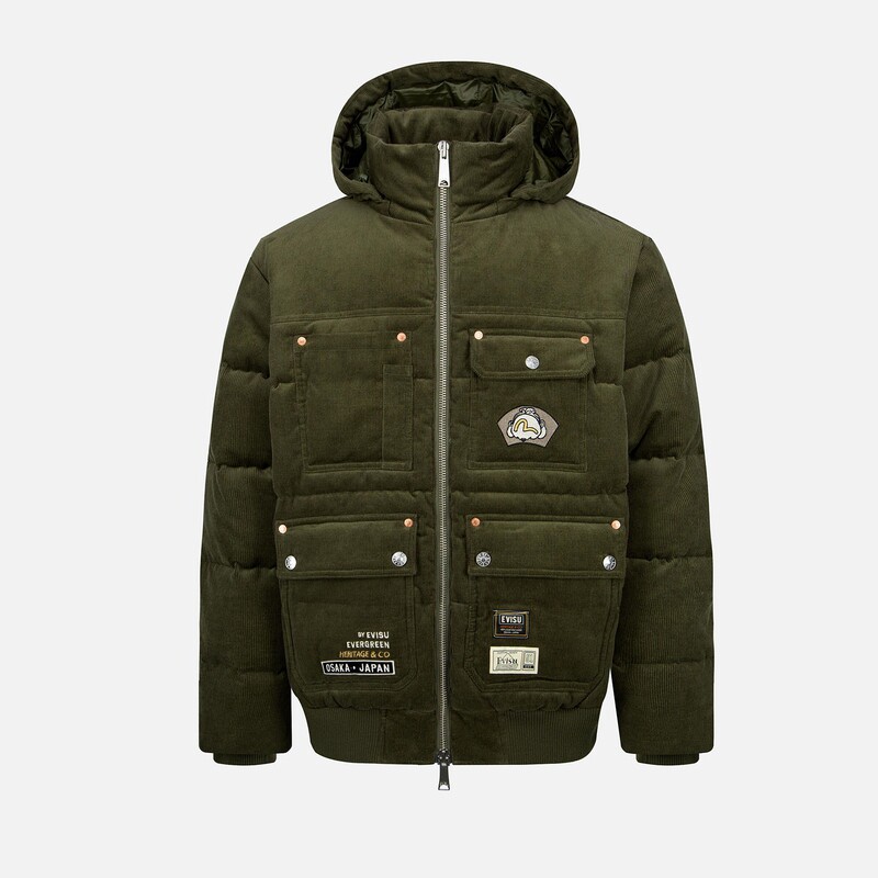 Мужской теплый вельветовый пуховик EVISU с вышивкой в виде головы Будды для мужчин 2EAHTM3NJ1943XXCD