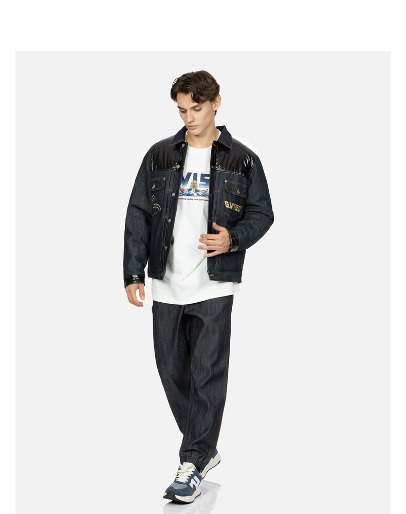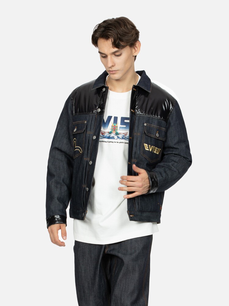 Мужская домашняя рубашка EVISU с цветочной вышивкой, воротник, теплая куртка-пуховик с вышивкой, 2EAHTM3NJ70XXCS