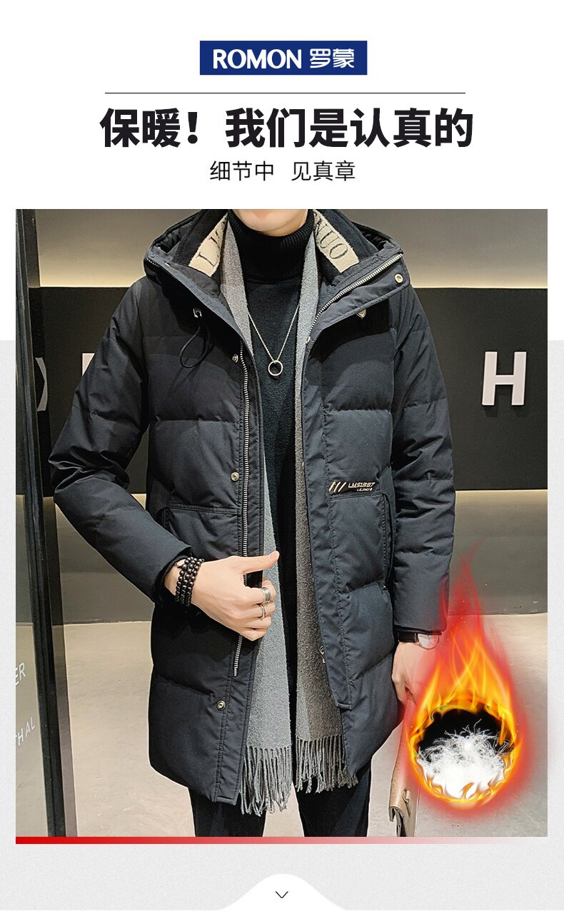 Мужской длинный удерживающий тепло пуховик с пухом, зимний плащ для отдыха, куртка, средней длины, 2024 года