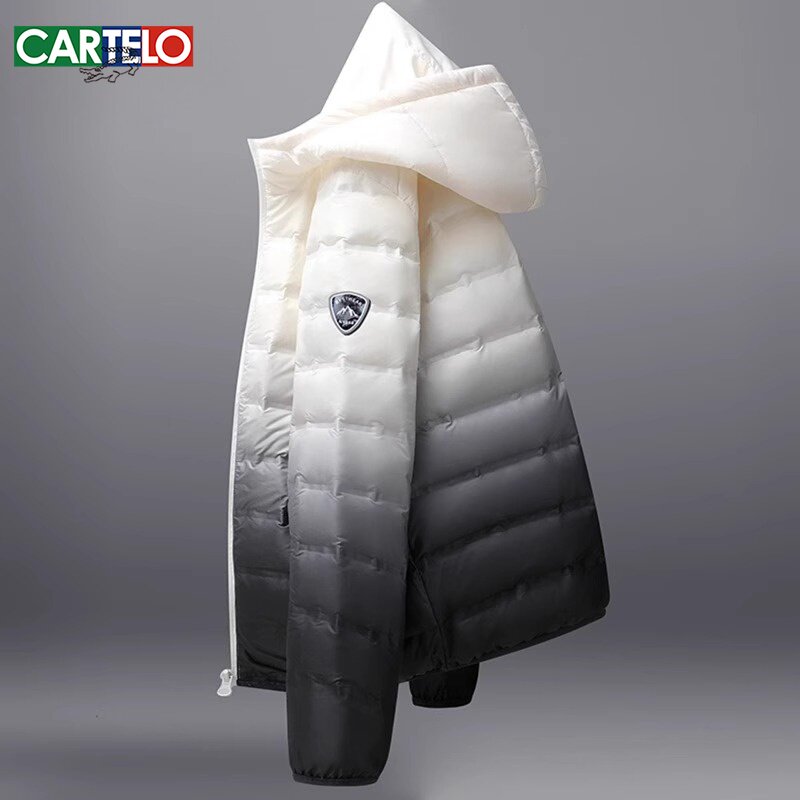 Мужской зимний пуховик, удерживающая тепло бархатная мужская куртка, градиент, утиный пух