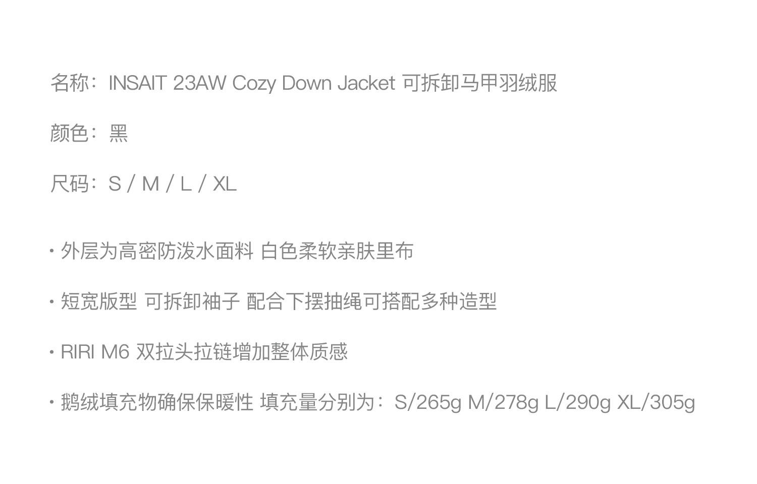 INSAIT 23AW Cosy Down Jacket с удаленной пиджакой с жилетом