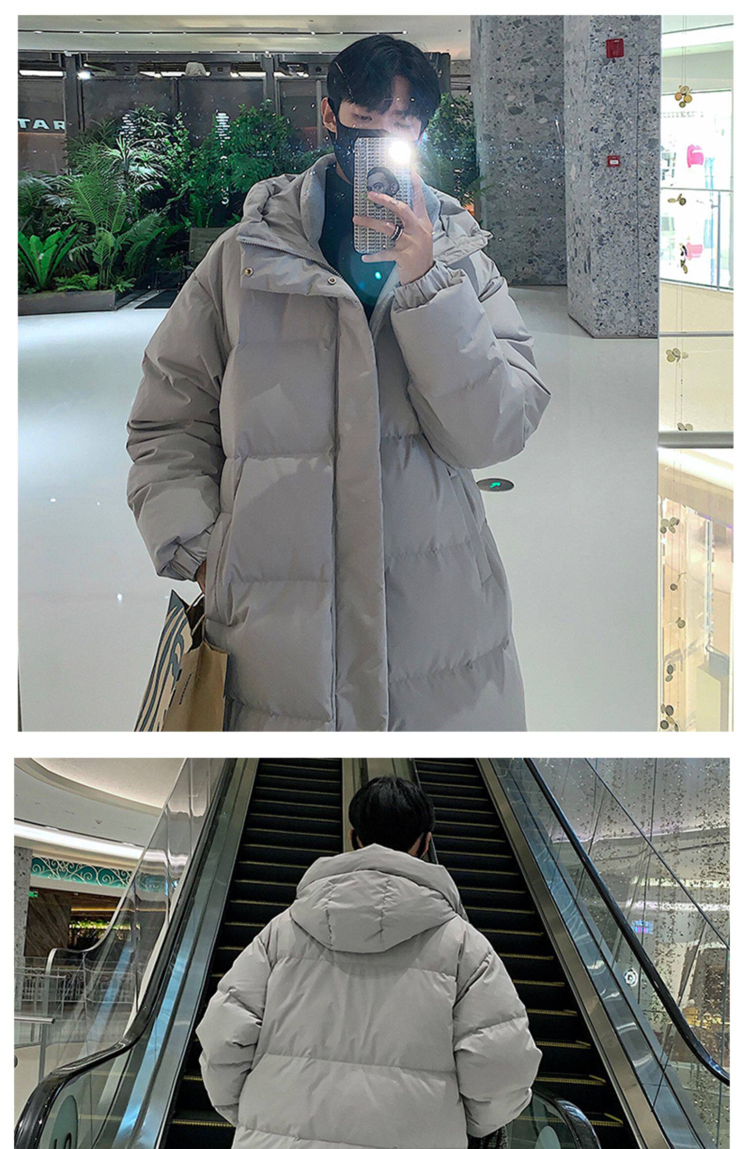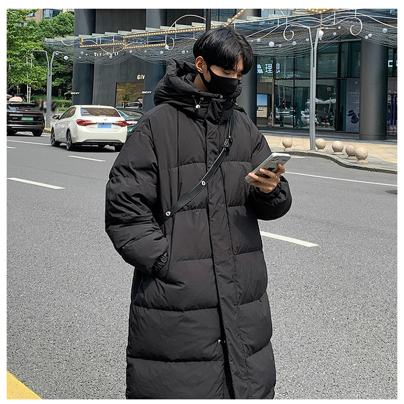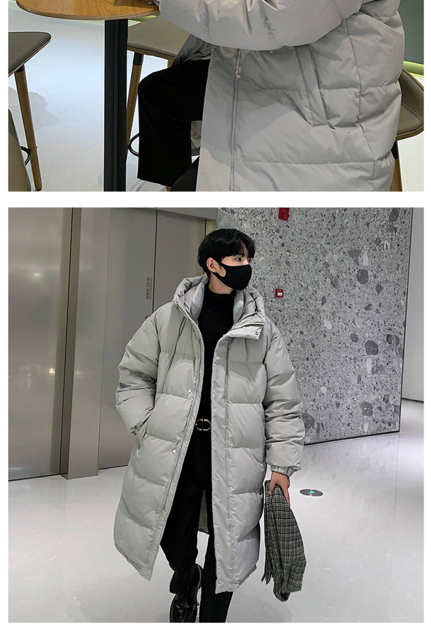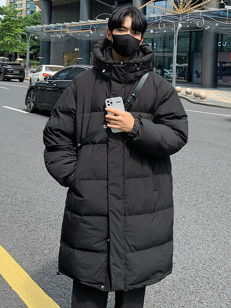 Мужской демисезонный пуховик, модная бархатная куртка с капюшоном, длина миди, утиный пух
