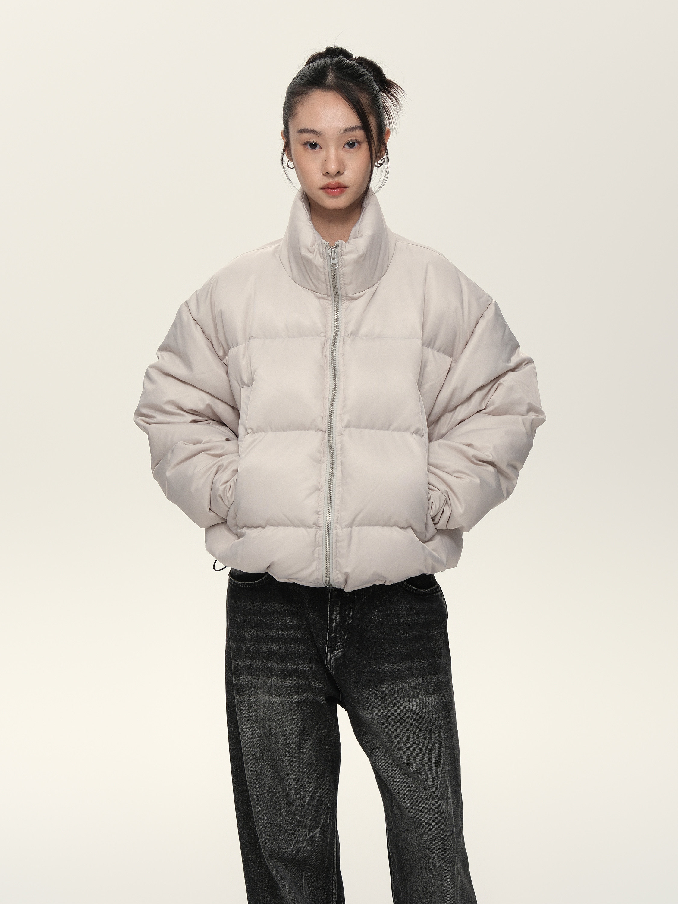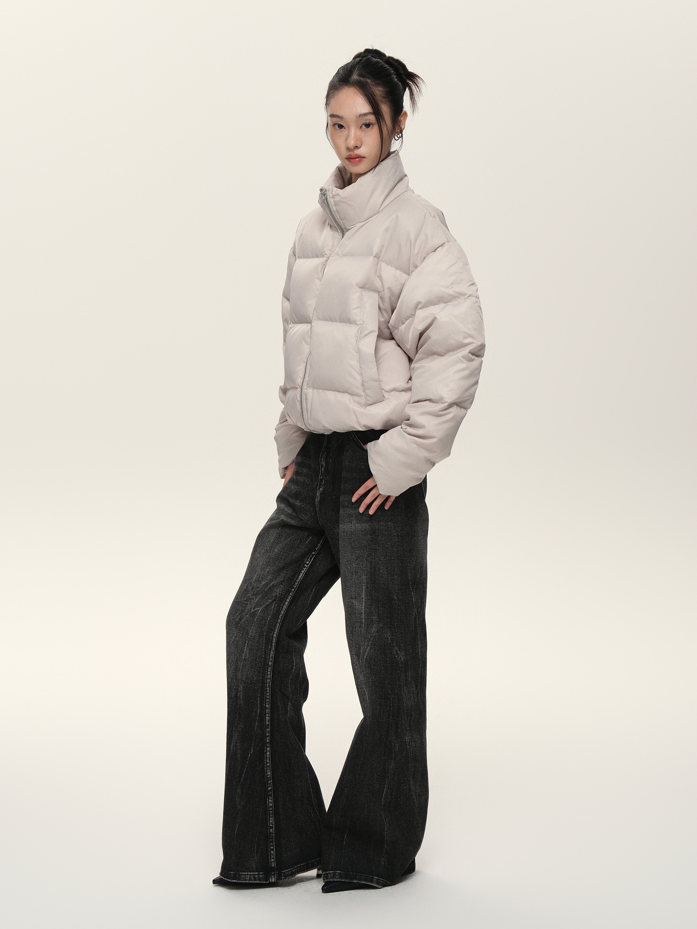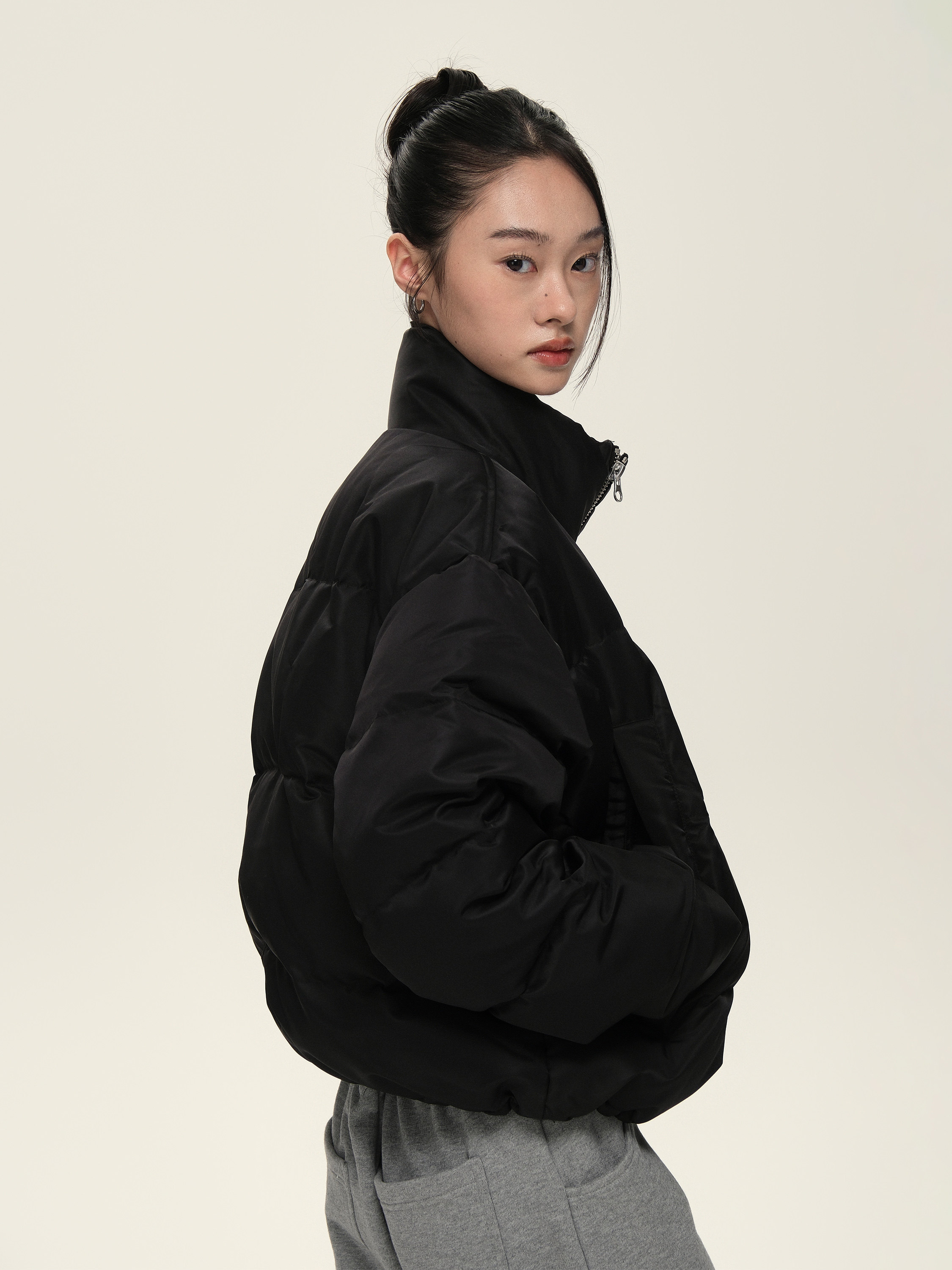 Расположенный для жизни 23AW90 White Duck Down Стоя Black Grey Dou.color Short Bosty Version