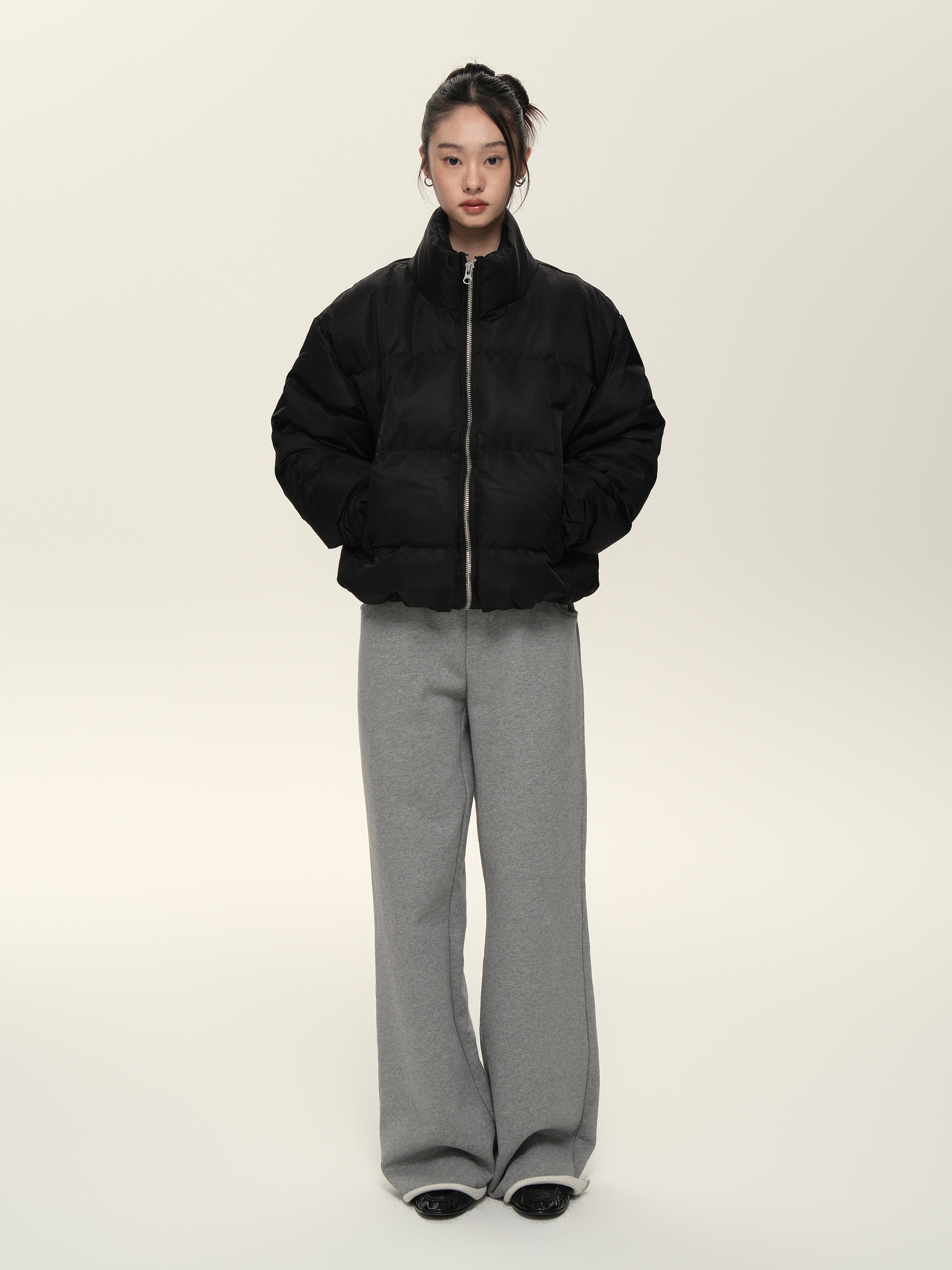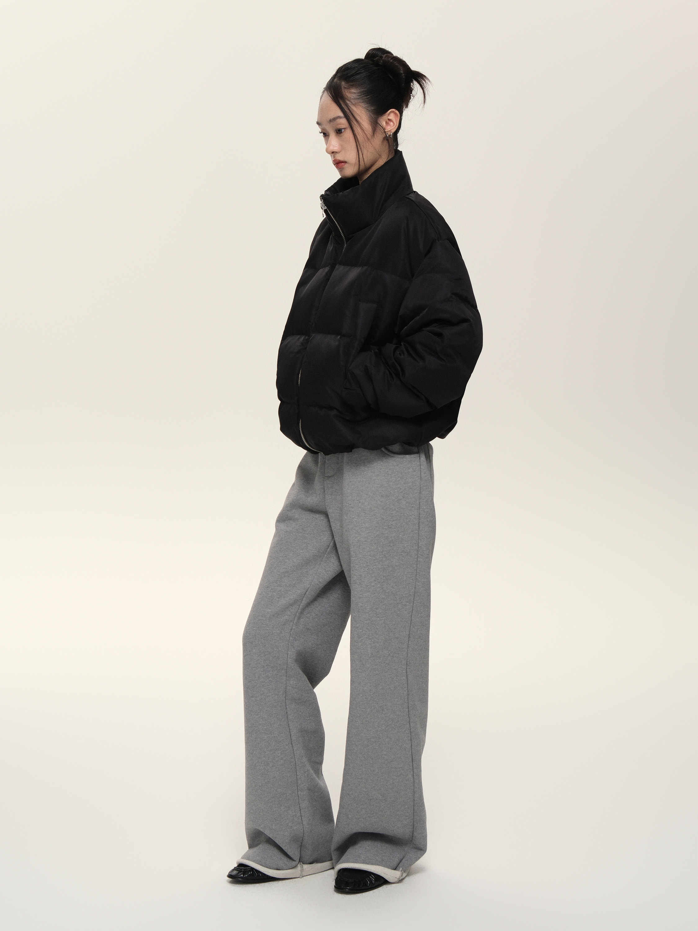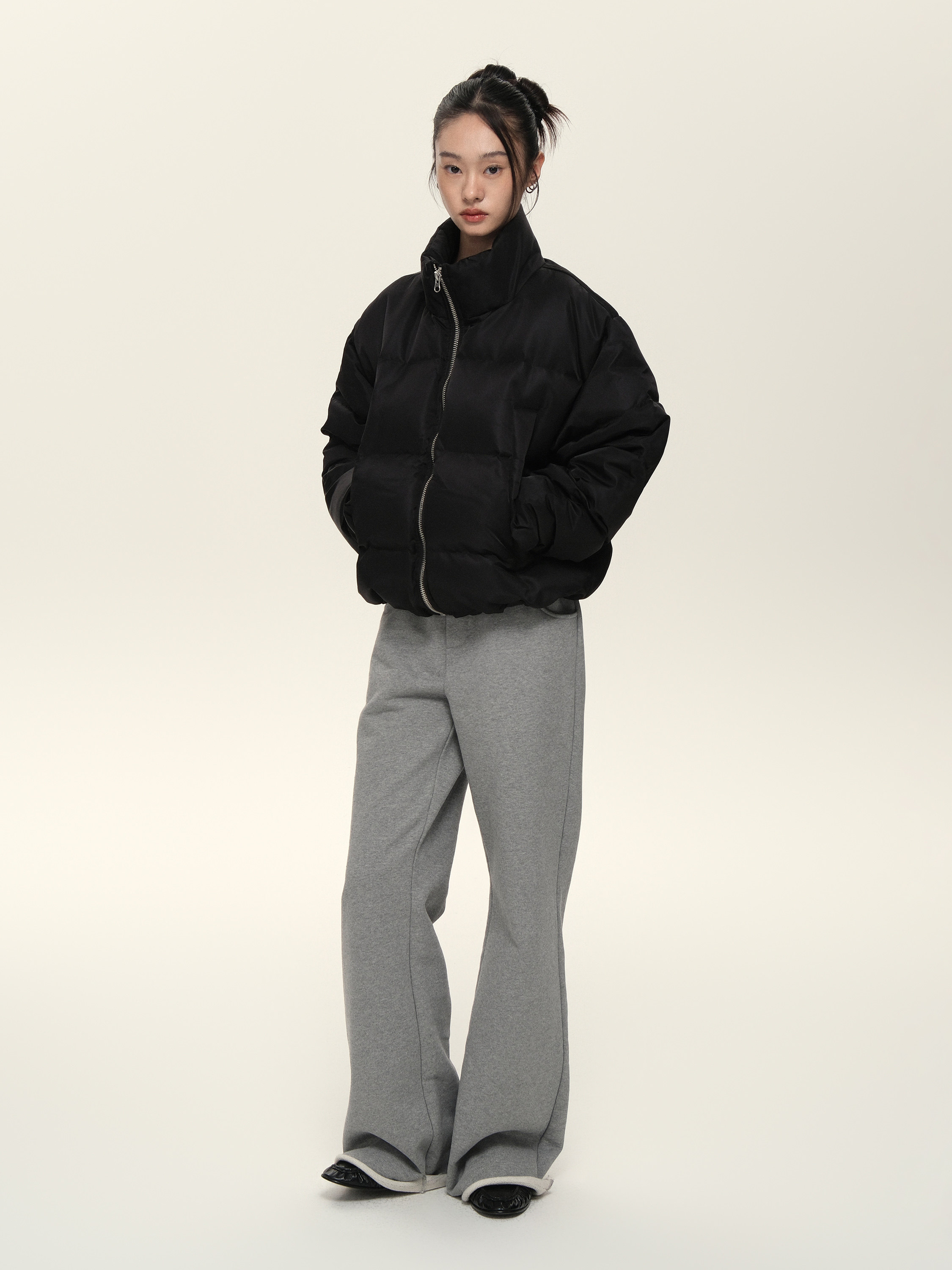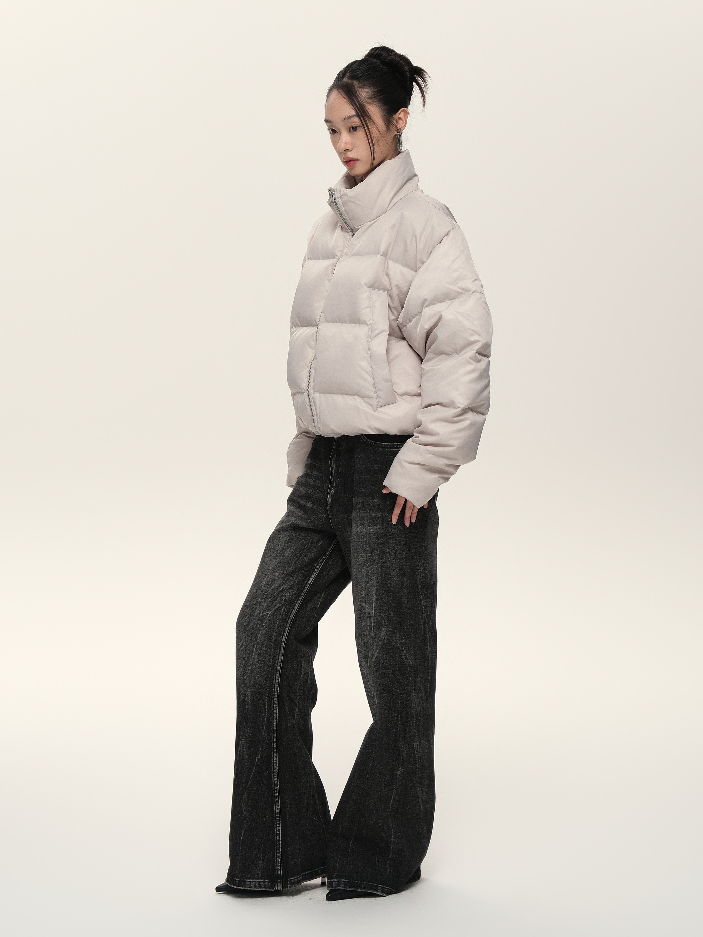 Расположенный для жизни 23AW90 White Duck Down Стоя Black Grey Dou.color Short Bosty Version