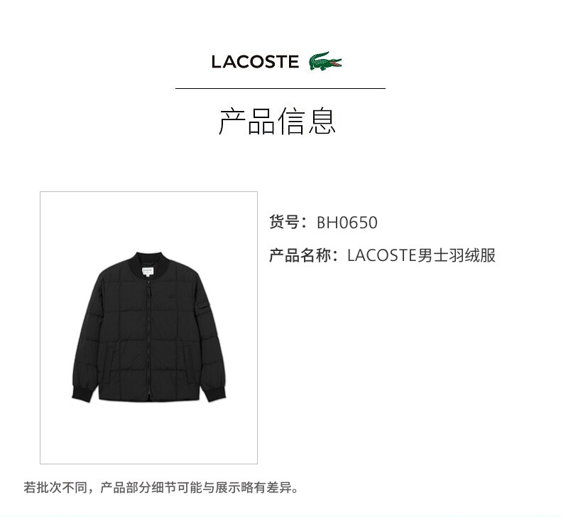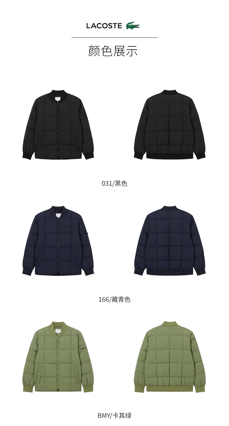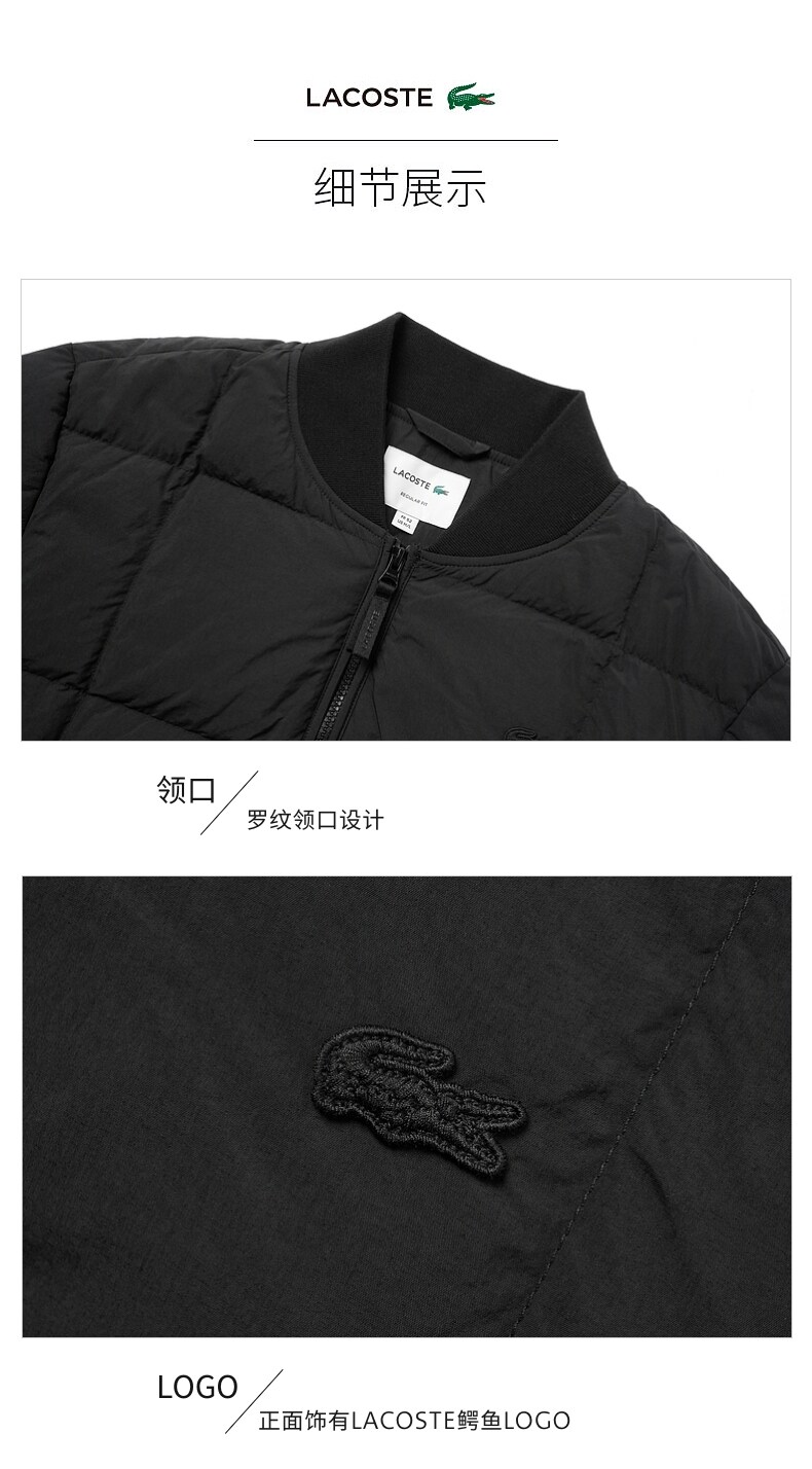 LACOSTE Французский крокодиловый мужской зимний модный универсальный теплый пуховик с бейсбольным воротником | BH0650
