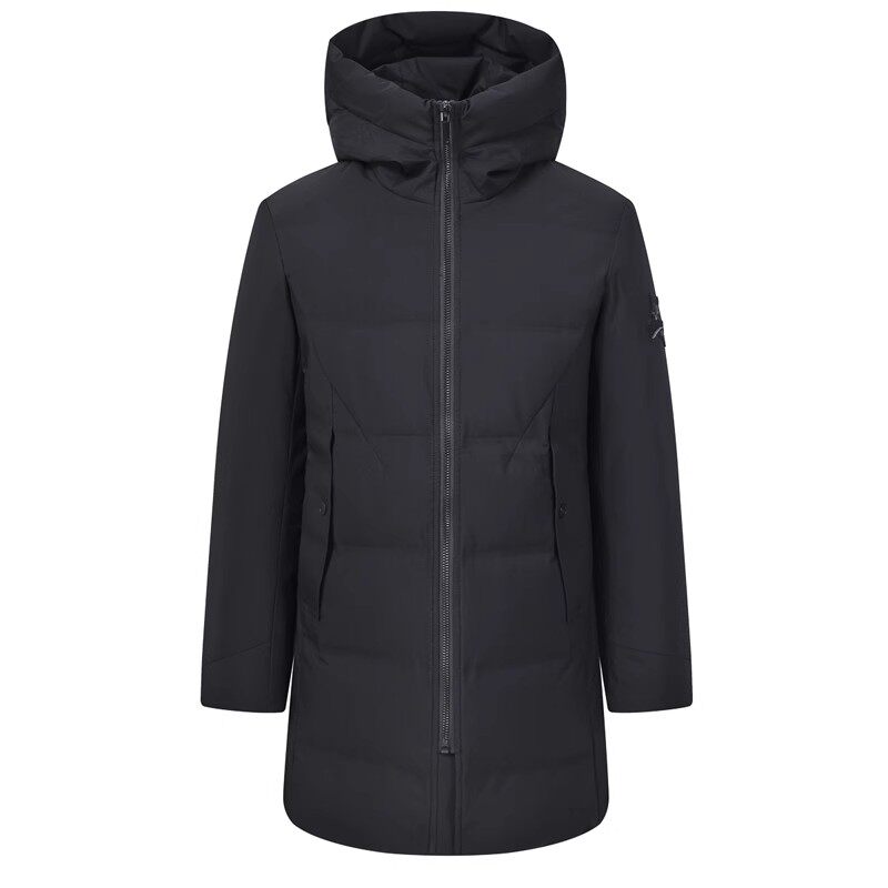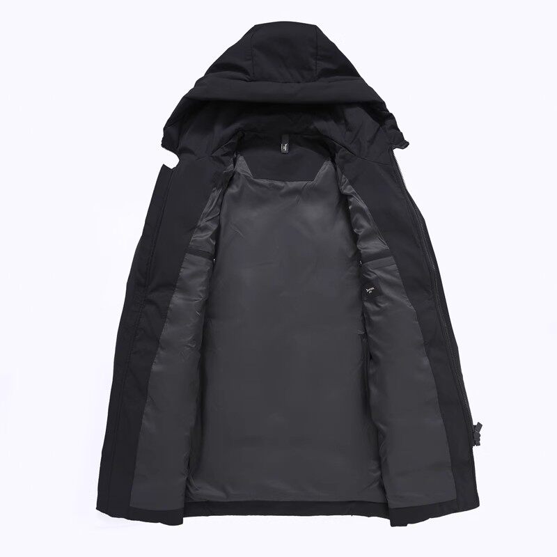 Бархатный пуховик, утепленная черная куртка, длина миди, белая одежда, утиный пух