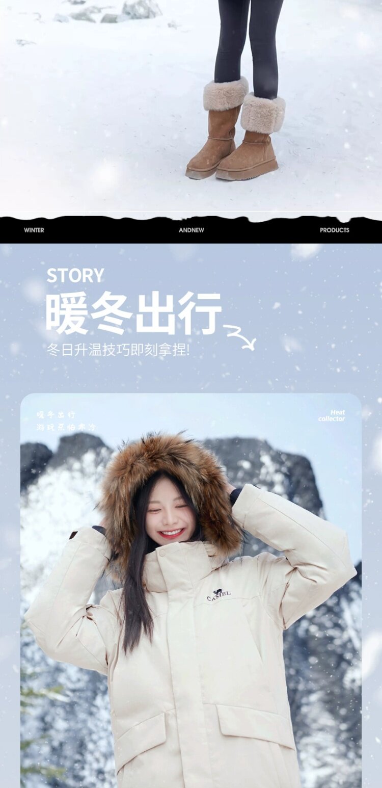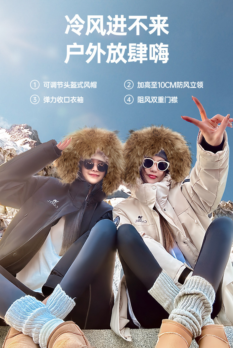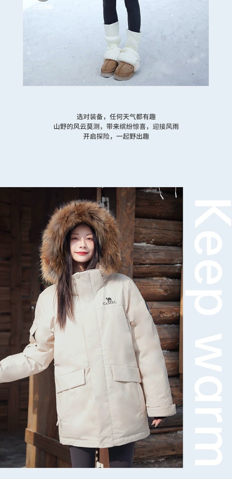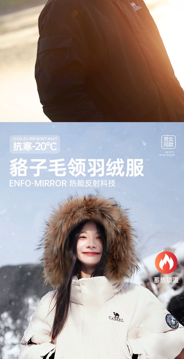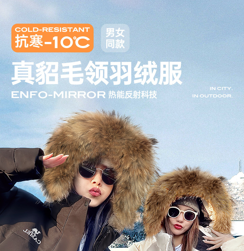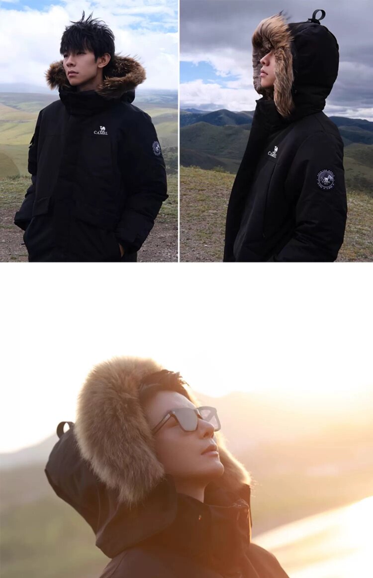 Водоотталкивающий пуховик Camel "Glacier Extreme Cold" с меховым воротником из енота