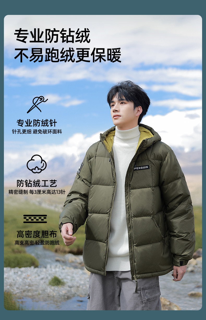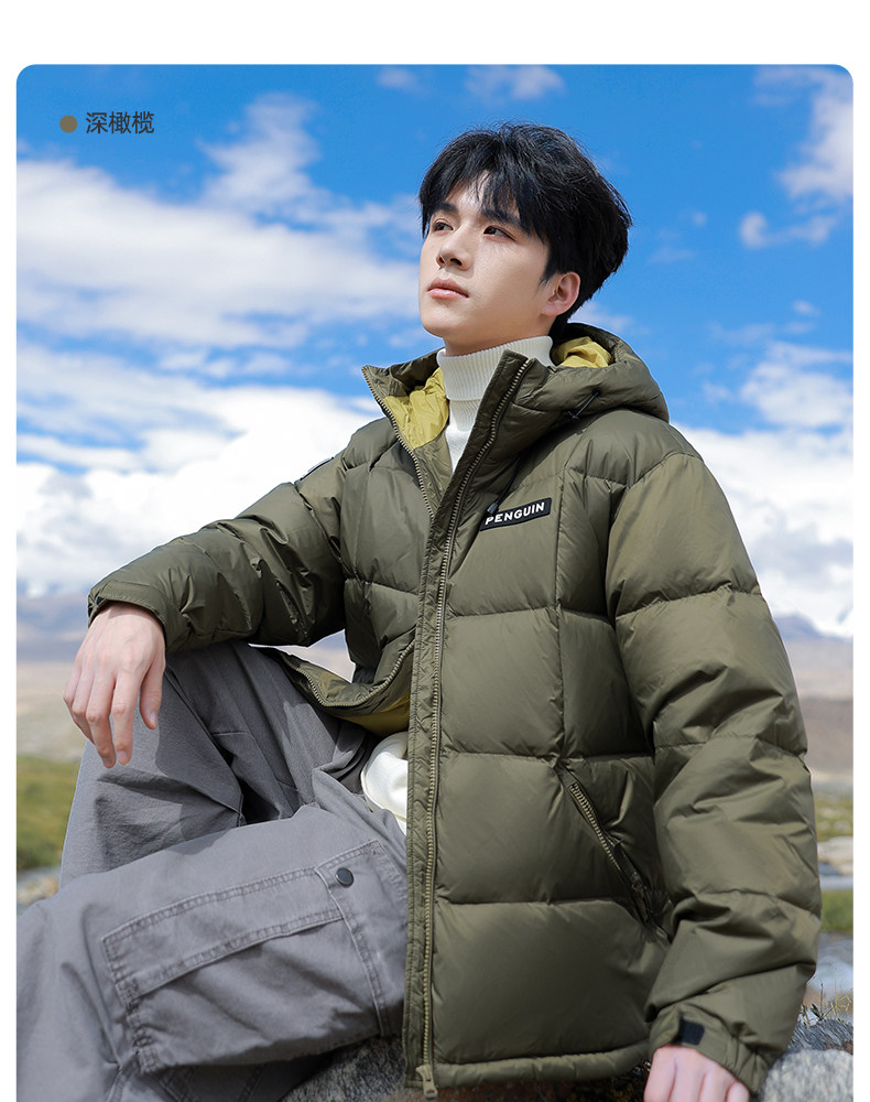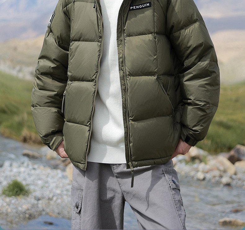 Верблюжий мужской термопух с пингвином, новинка зимы 2025, пара утолщенных теплых уличных коротких мужских и женских курток с хлебом