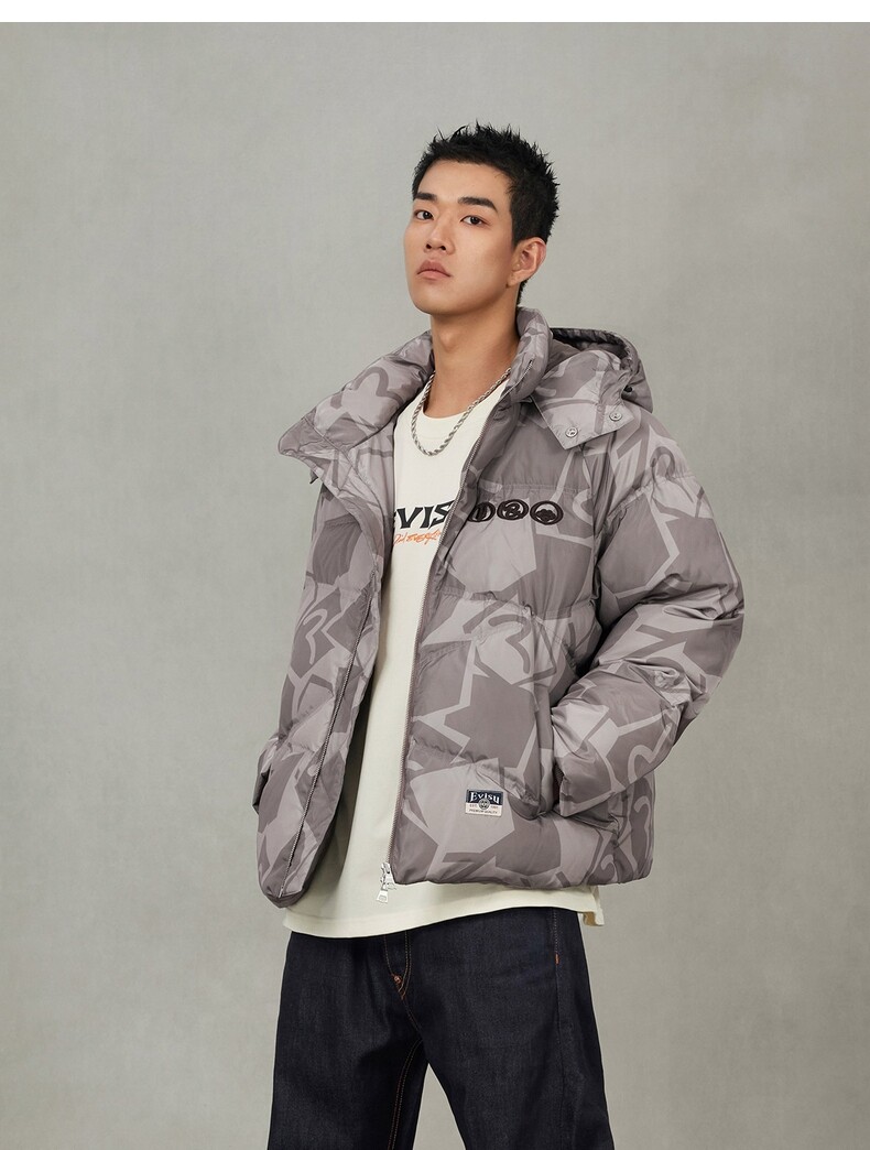 [Ограниченная по времени скидка 10%] EVISU Fushen 2025, новая зимняя мужская универсальная куртка-пуховик с принтом чайки