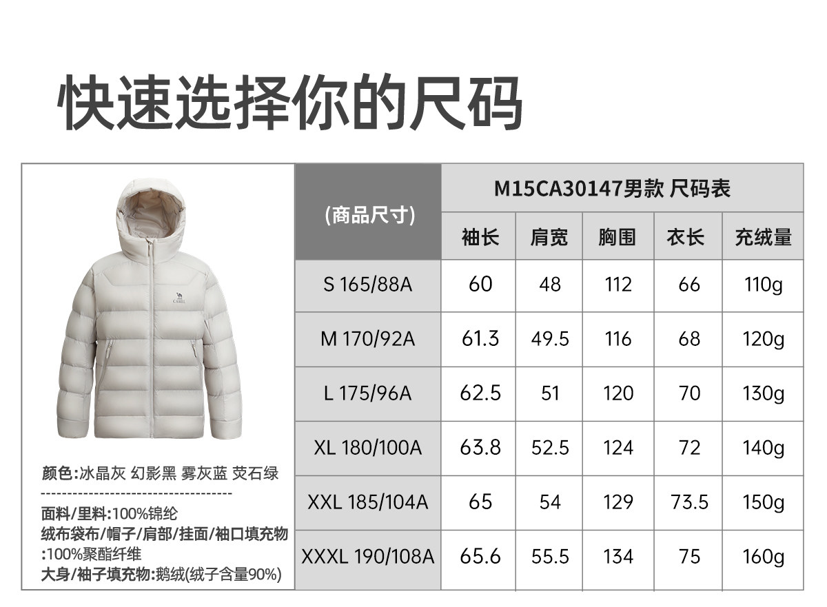 【Добавьте к покупке!K сестра Double 11] Camel "Nuan Yang pro" пара графеновых ребер гусиный пуховик 90 бархат