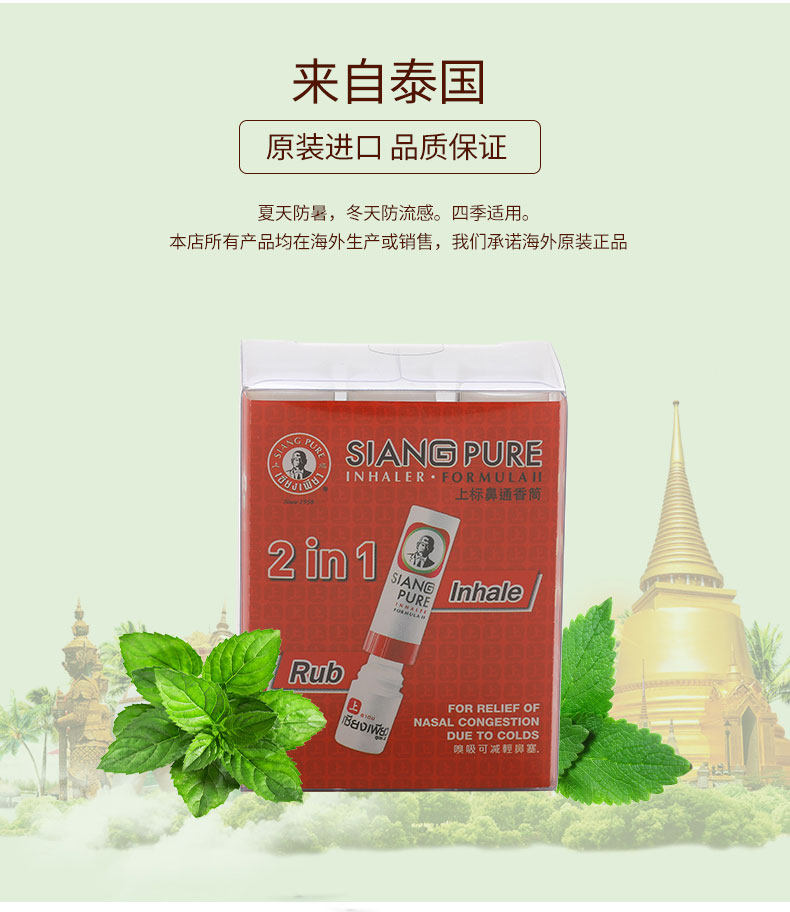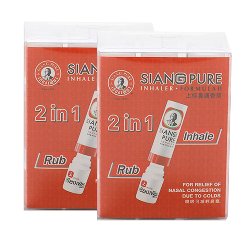Siang Pure 2 -In -1 -Насальная тайская травяная формула приводы, чтобы предотвратить захваченный освежающий мозг 6 штук*2 коробки