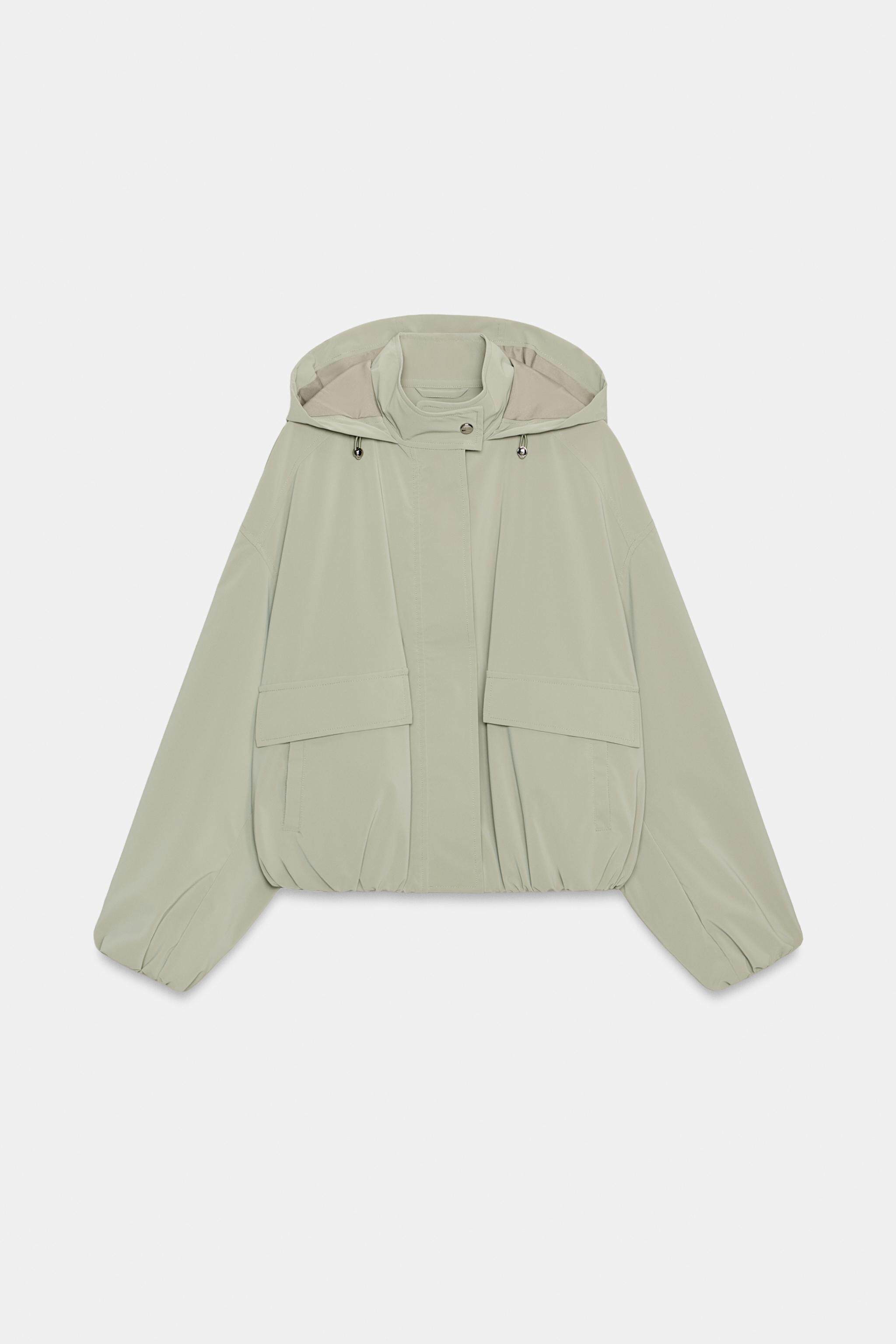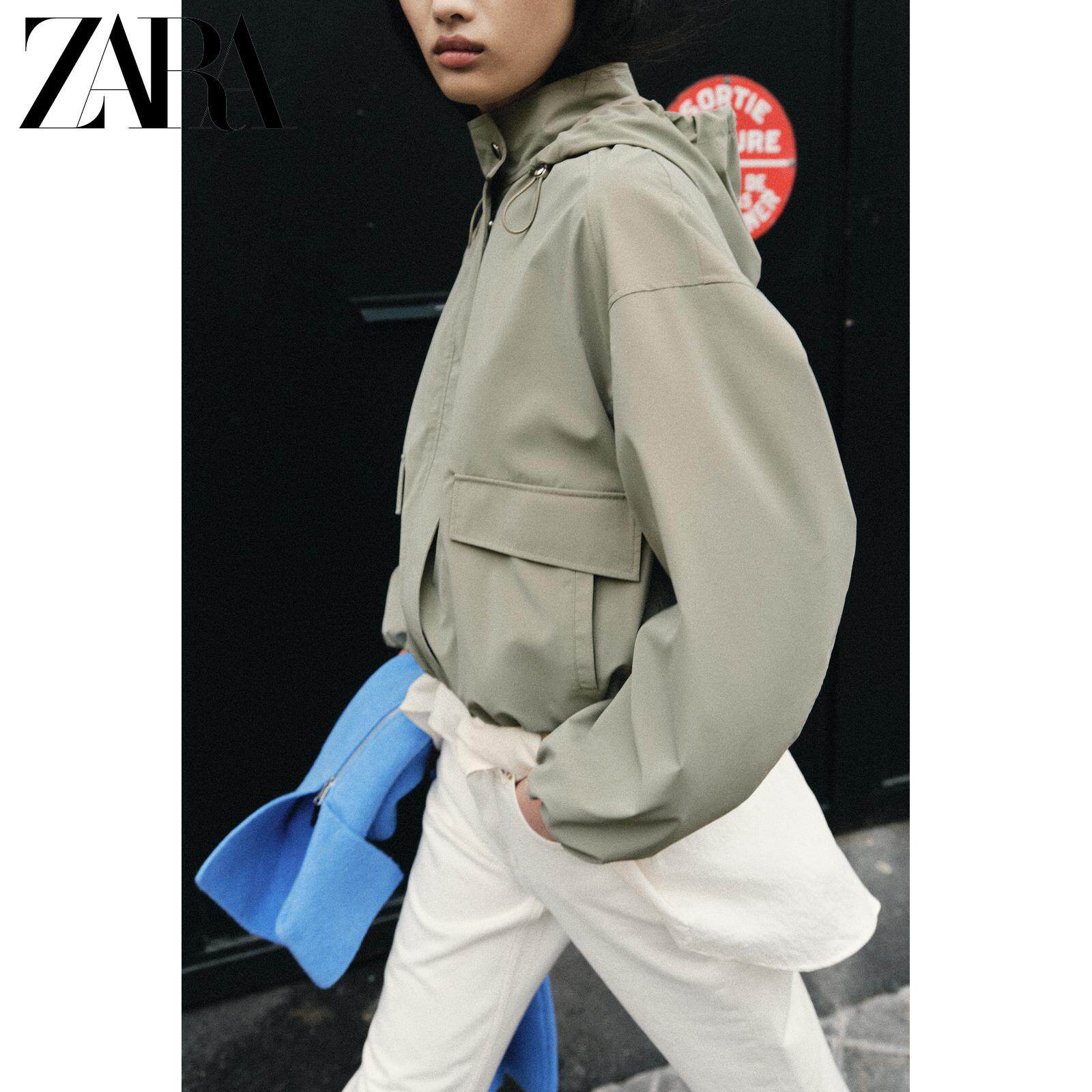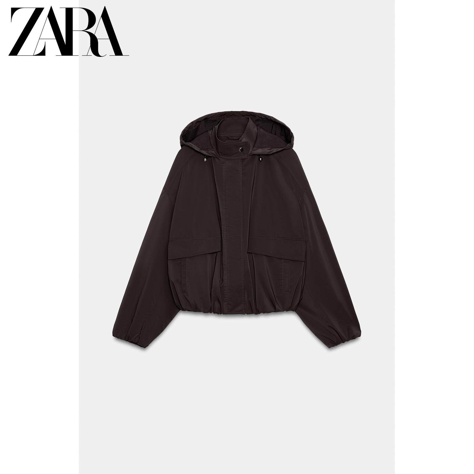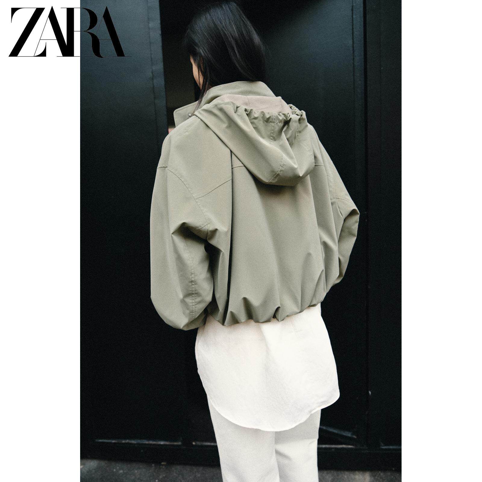 ZARA Новинки весны и лета 2026, женская ламинированная куртка с длинным рукавом и воротником-стойкой, с капюшоном 3046044 505