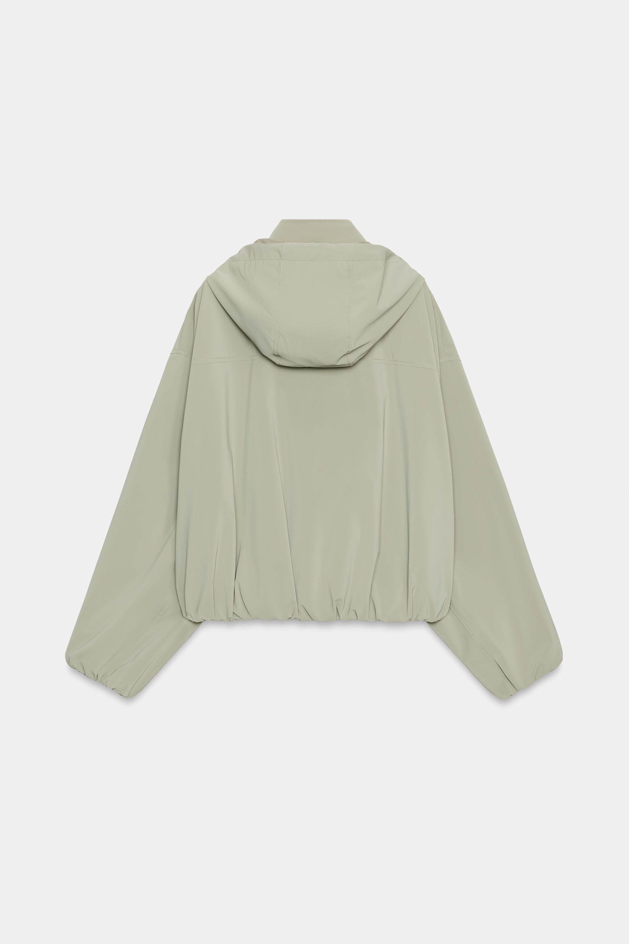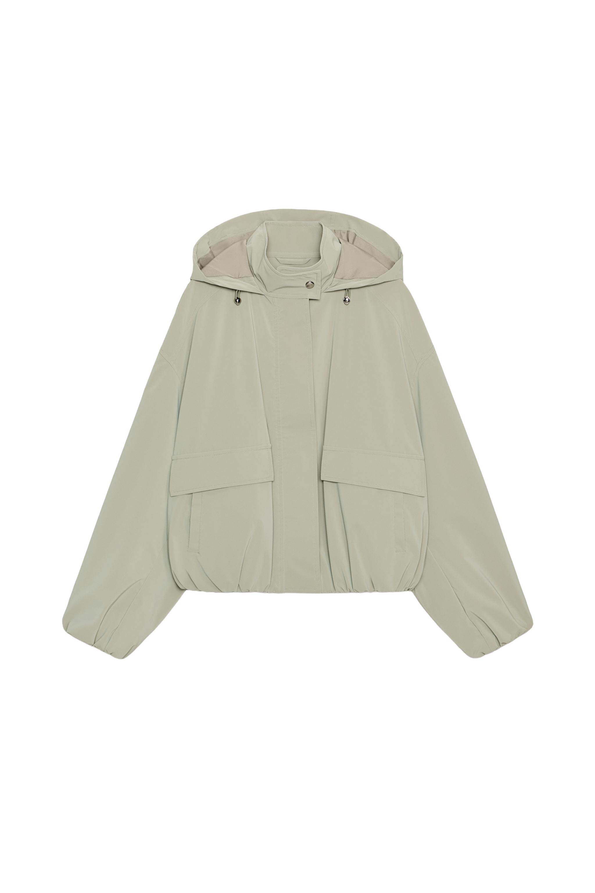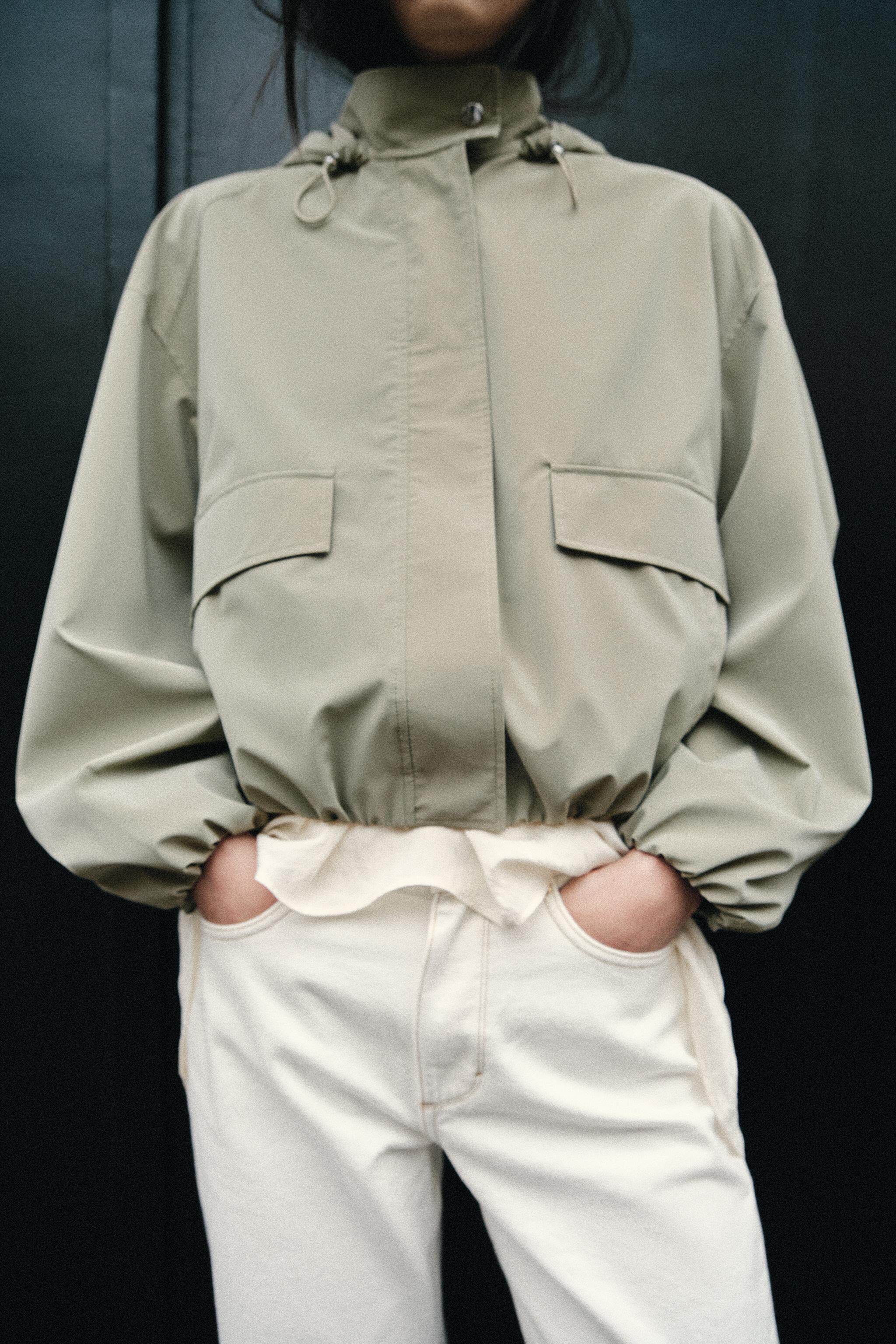 ZARA Новинки весны и лета 2026, женская ламинированная куртка с длинным рукавом и воротником-стойкой, с капюшоном 3046044 505