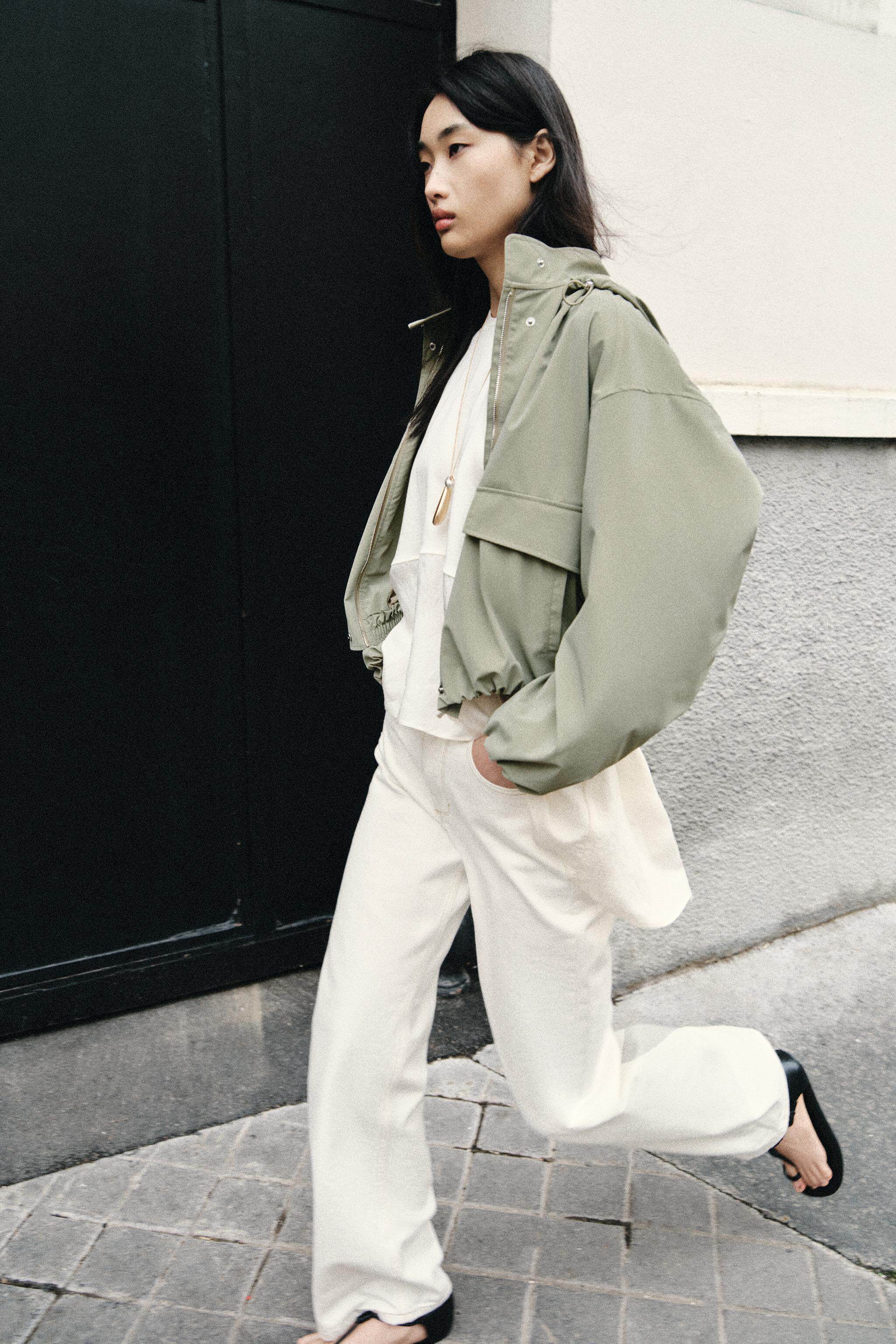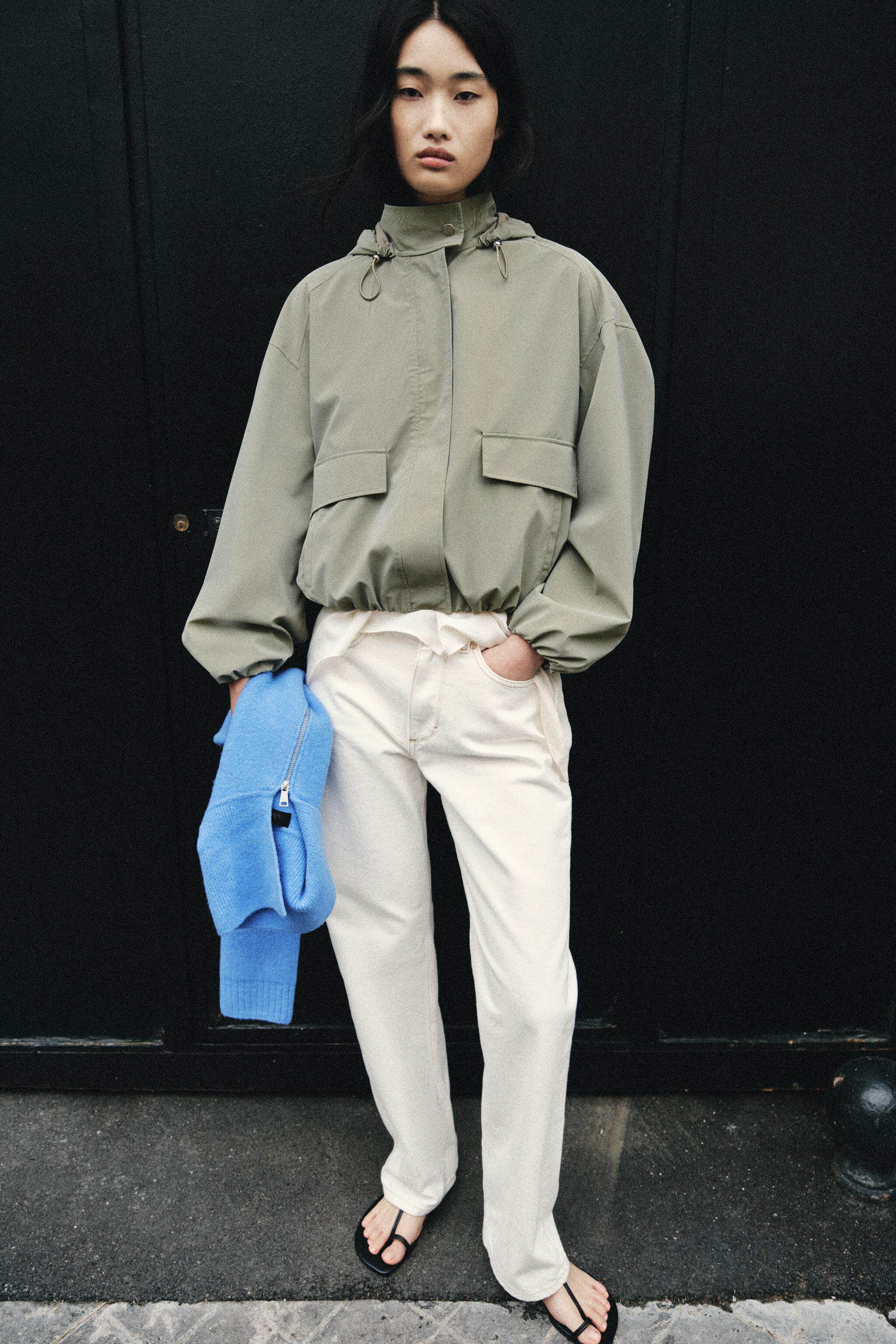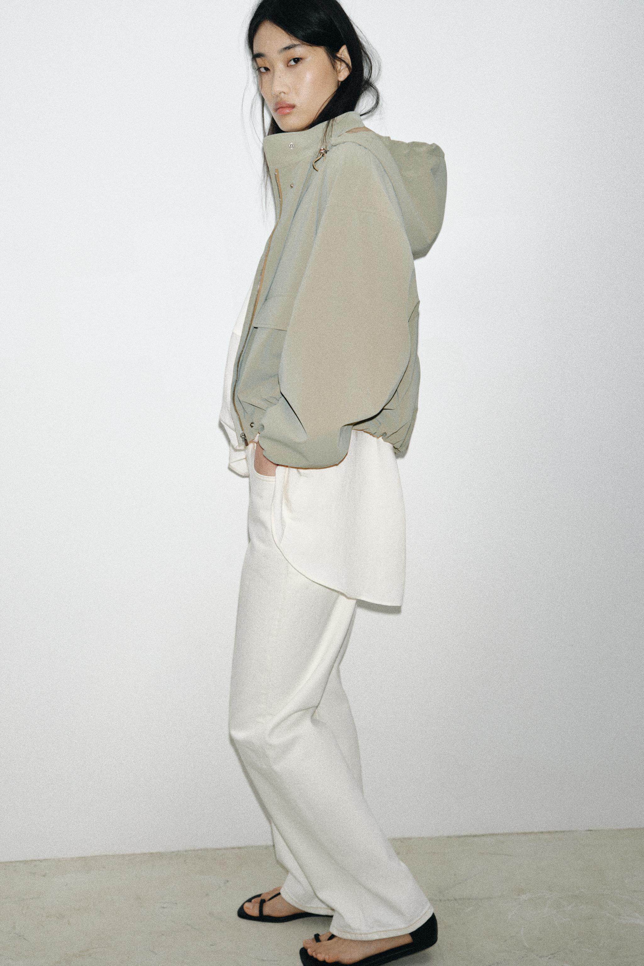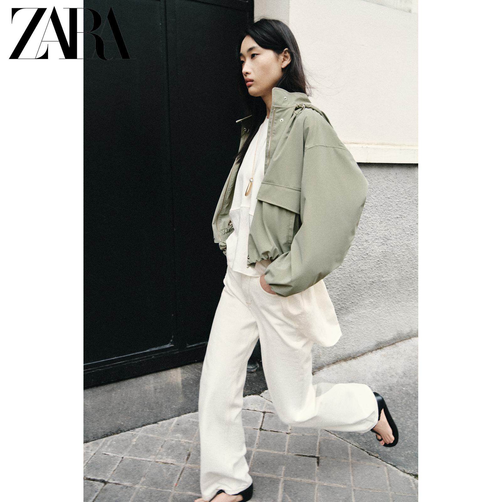 ZARA Новинки весны и лета 2026, женская ламинированная куртка с длинным рукавом и воротником-стойкой, с капюшоном 3046044 505