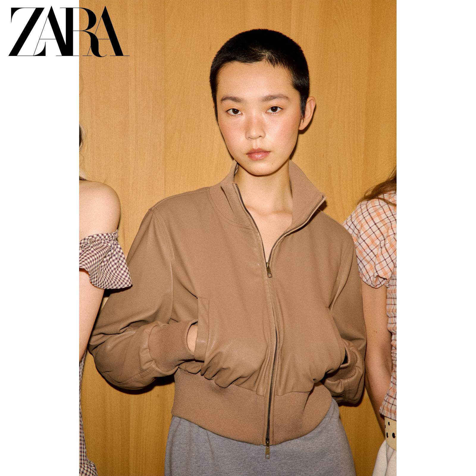 ZARA Новое поступление весны и лета 2026, женская куртка-бомбер из искусственной кожи с воротником-стойкой 8490793 751