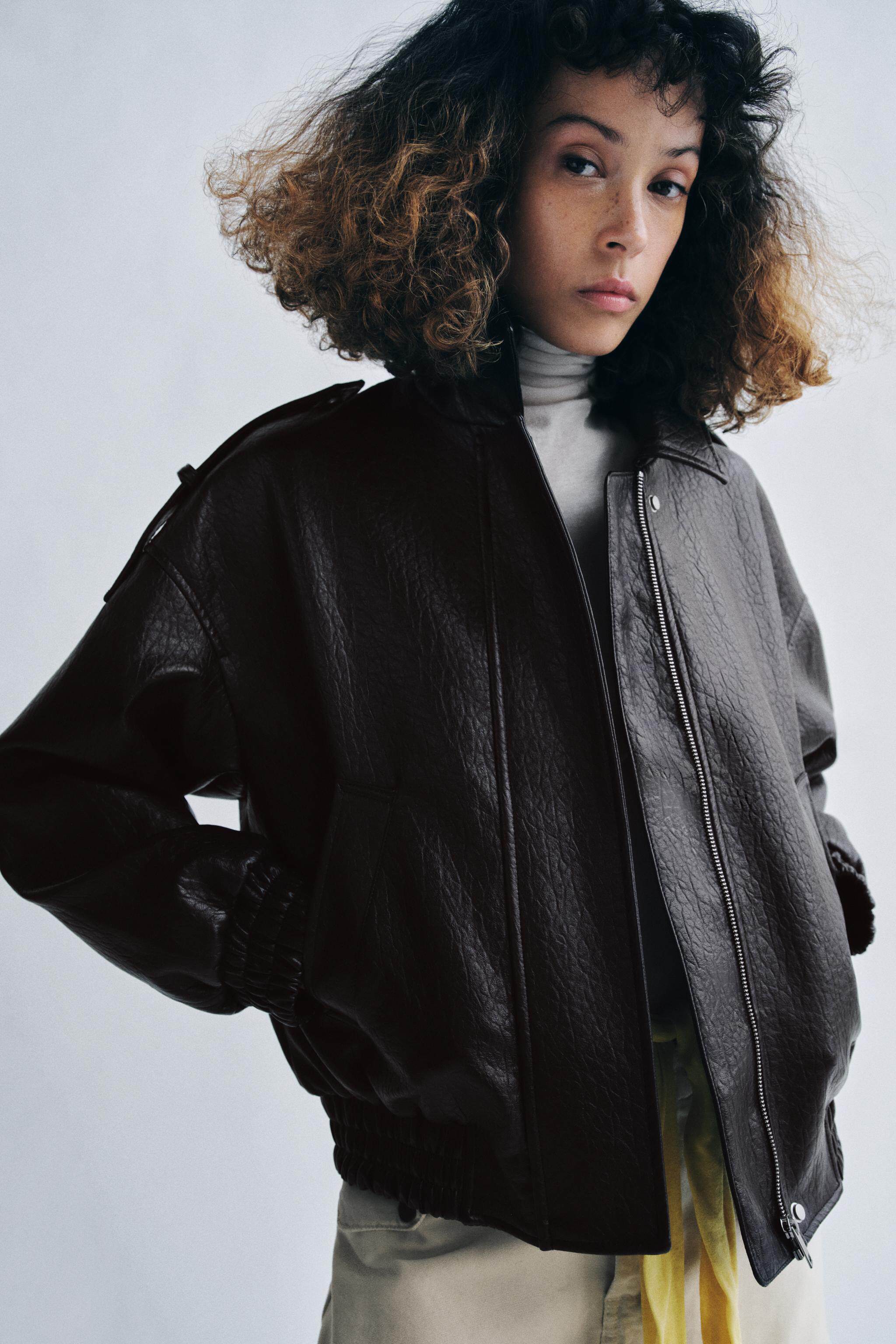 ZARA Новинки весны и лета 26. Женская куртка-бомбер с эффектом кожи серии ZW 8491043 606