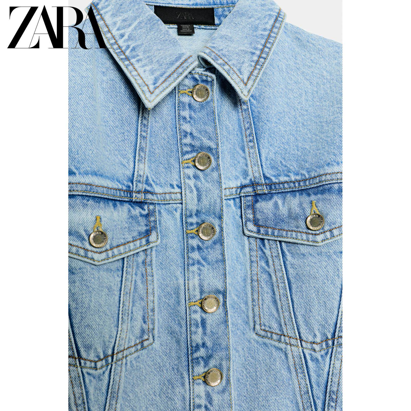 ZARA Новинки весны и лета 2026. Женская короткая джинсовая куртка Z1975 с мягкими плечами 4083038 427
