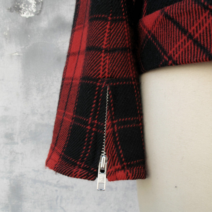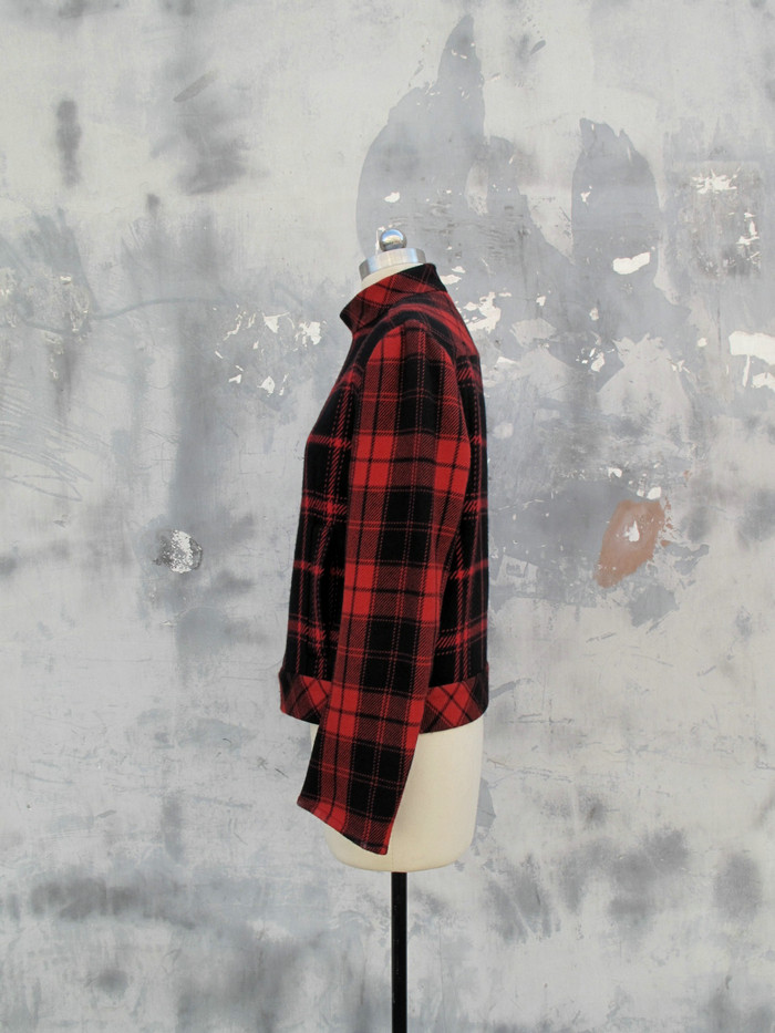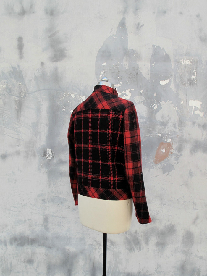Это третий из четырех стилей в красную клетку: короткая куртка, напоминающая мотоциклетную.