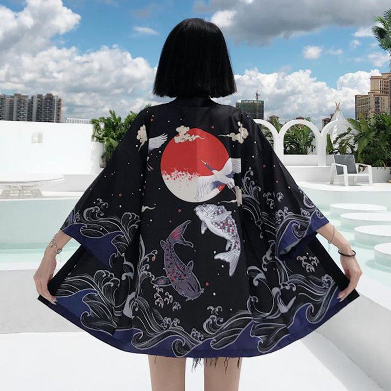 Японский кардиган, одежда для защиты от солнца, куртка подходит для мужчин и женщин, ханьфу, набивка пером, китайский стиль