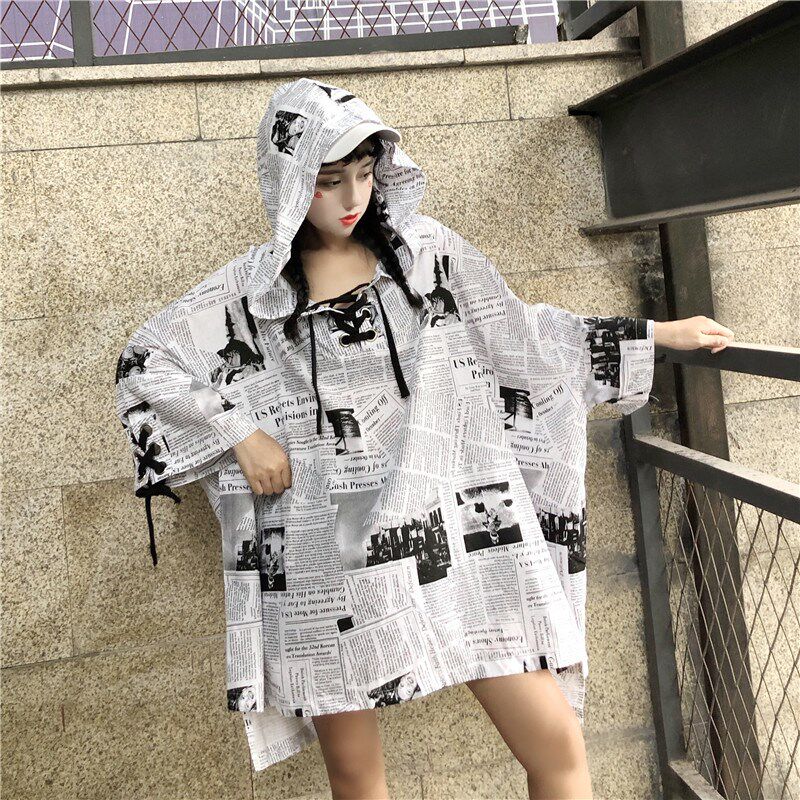 Персонализированная футболка для толстых девушек весом 200 фунтов, толстая мм, большая футболка очень большого размера, свободный топ в стиле Харадзюку, толстовка с газетой для колледжа для девочек