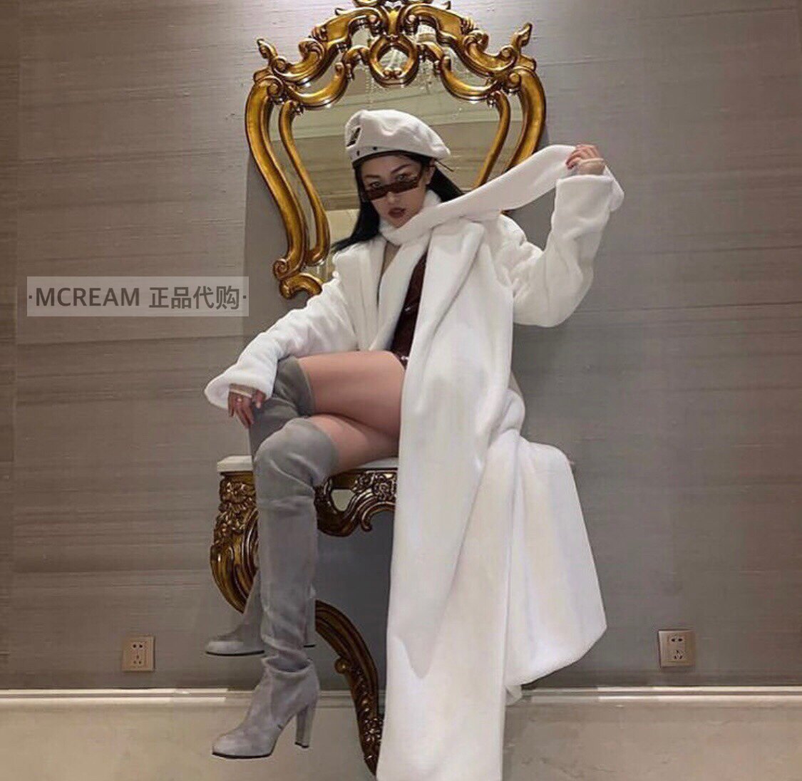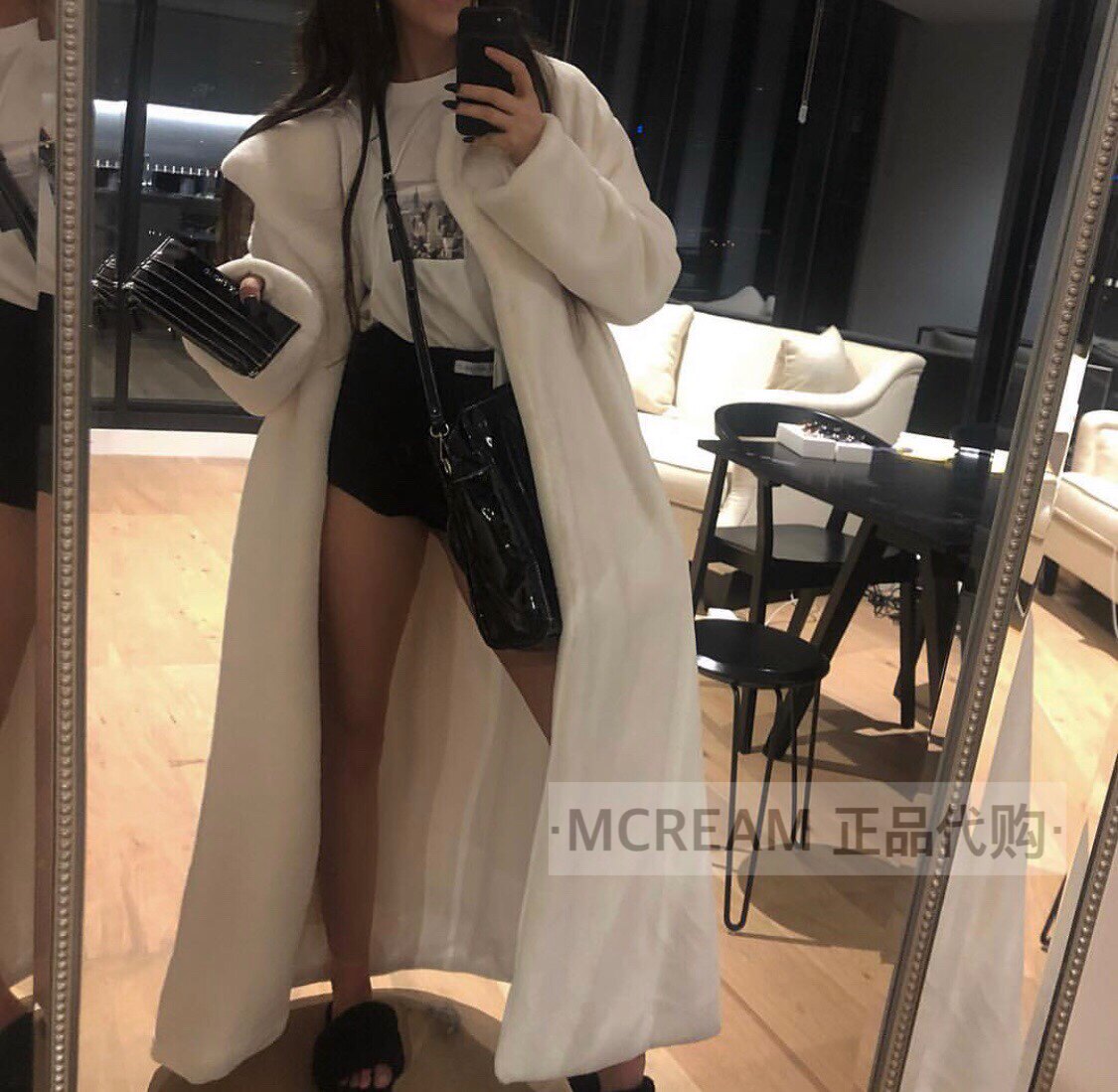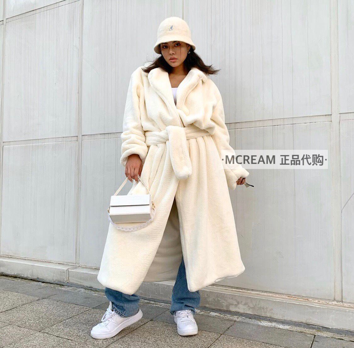 Подлинная покупка mmmi kylie то же самое подиум -шоу пушистое отворотное халат -стиль халата -