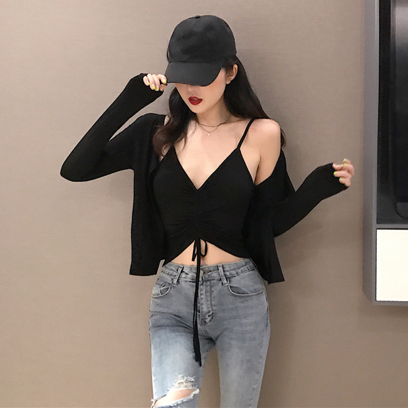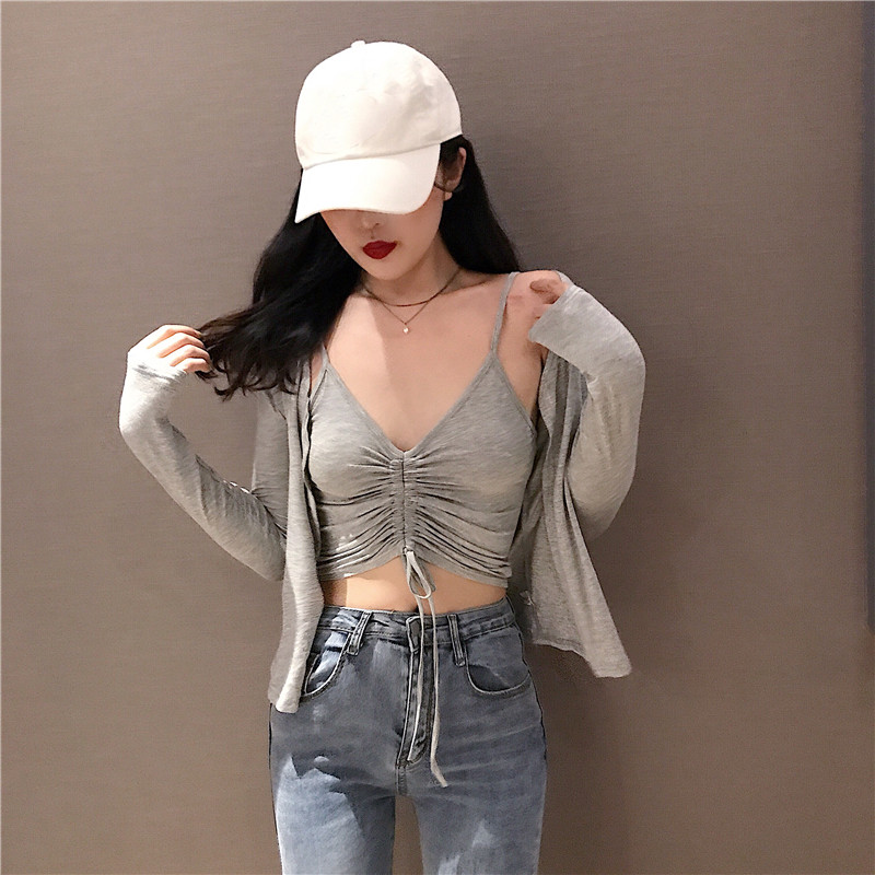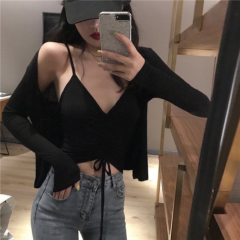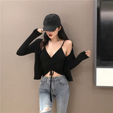 Демисезонный приталенный кардиган, куртка, комплект, на шнурках, V-образный вырез, эффект подтяжки