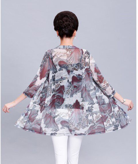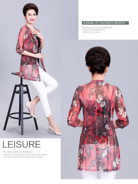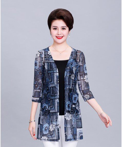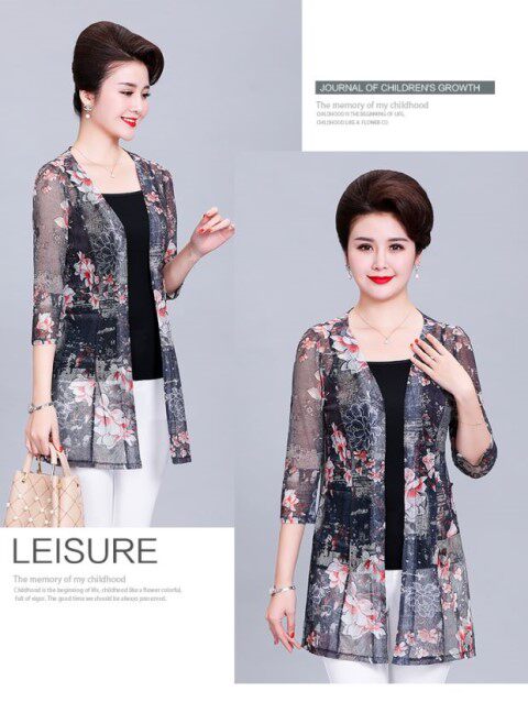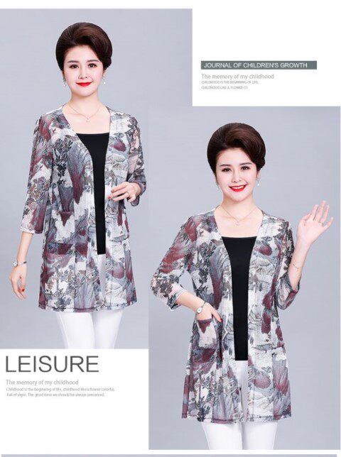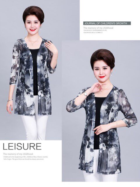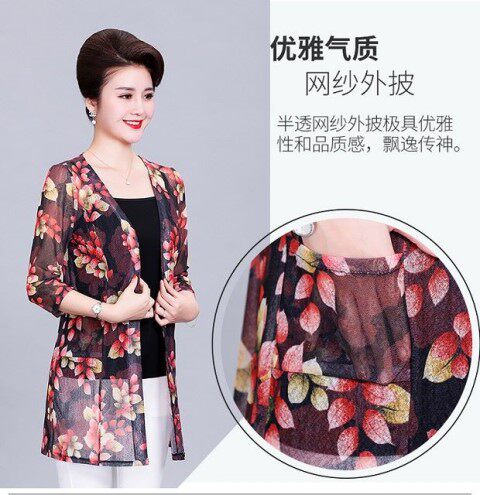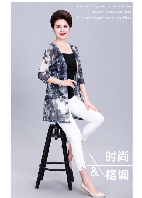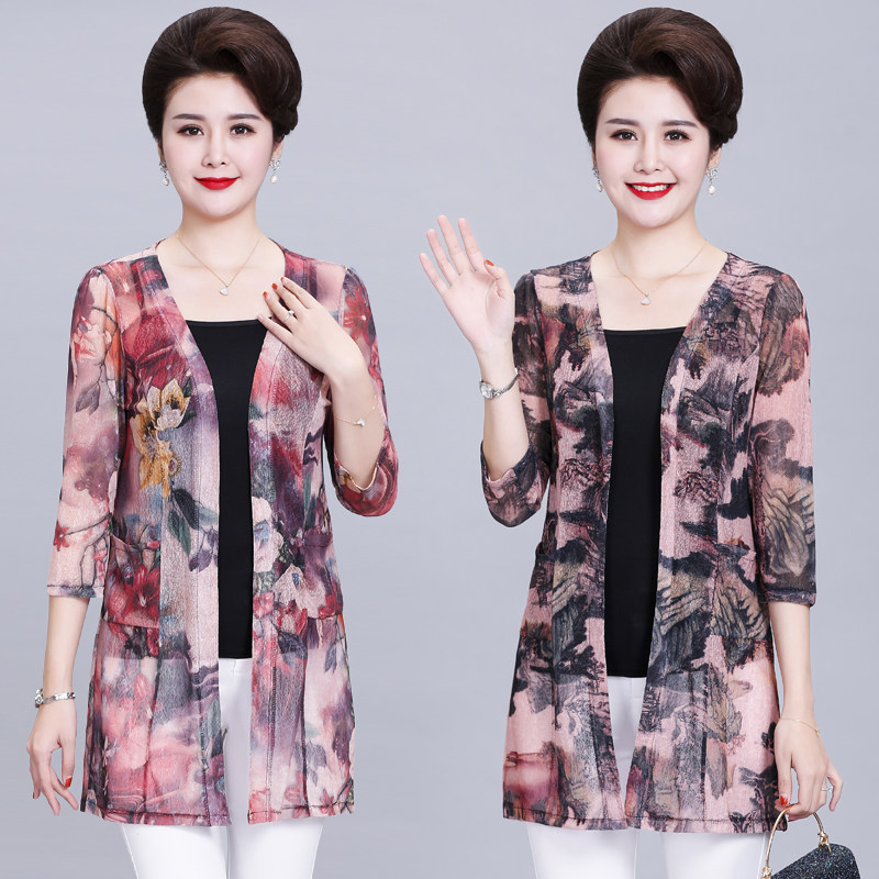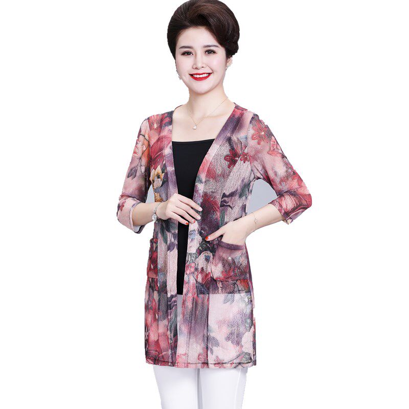 Кардиган, длинная куртка для матери, шелковая накидка, для среднего возраста, средней длины, большой размер, защита от солнца