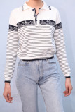 BrandyMelville Удобный белый вязаный воротник с длинными рукавами и темно-синими полосками и парусным узором