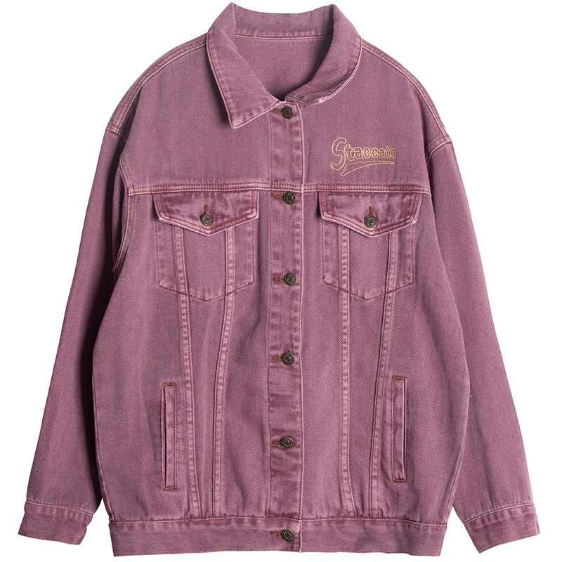 Ретро джинсовая сиреневая осенняя тонкая короткая куртка, в американском стиле, европейский стиль