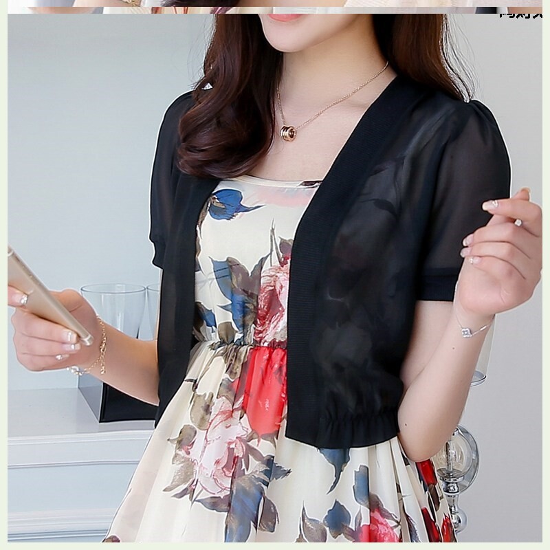 Шифоновый летний кардиган, короткая накидка, куртка, модное платье-комбинация