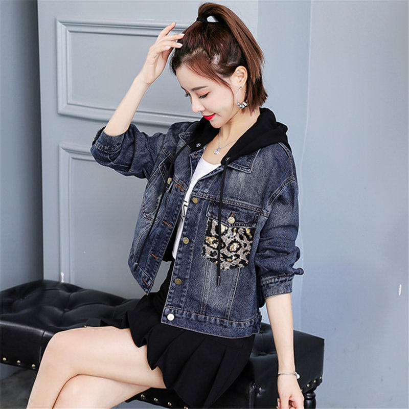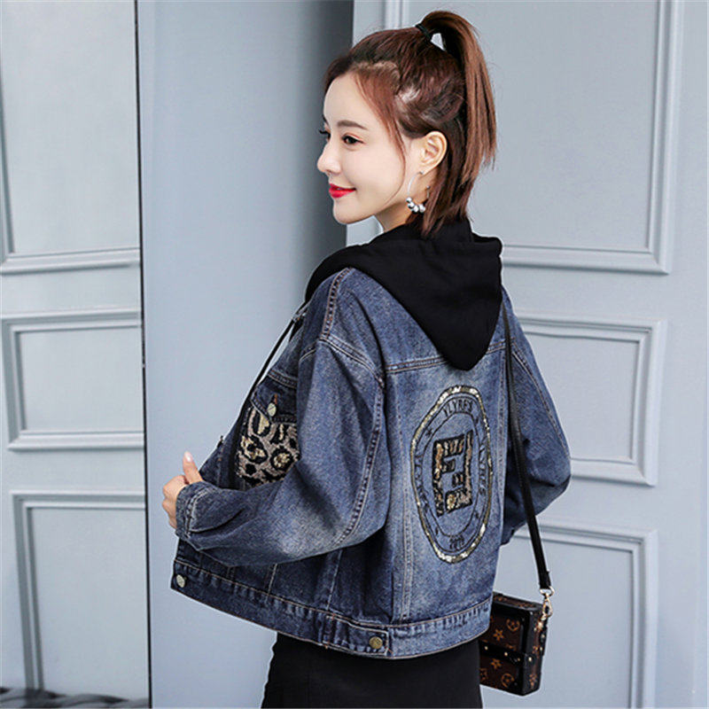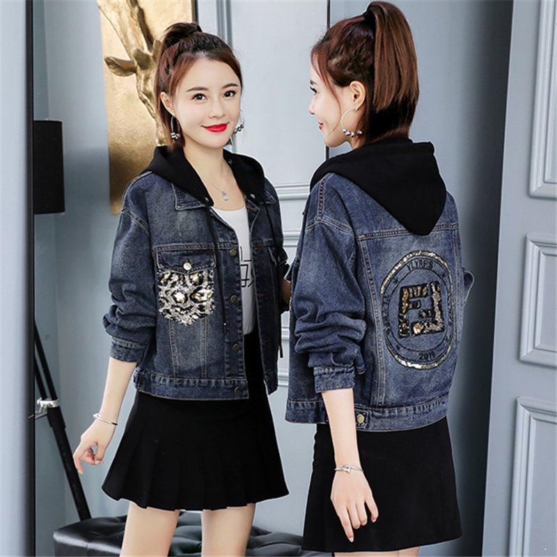 Джинсовая осенняя куртка с капюшоном, популярно в интернете, в корейском стиле