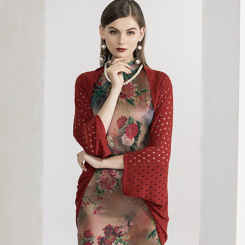 Трикотажный кардиган, ретро куртка, накидка, летняя подходит с юбкой, ципао