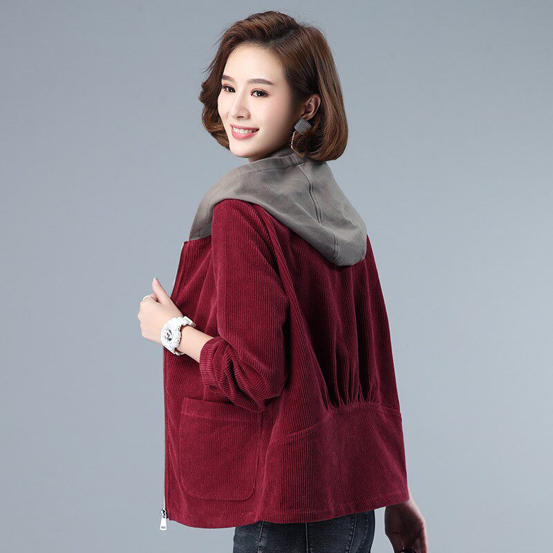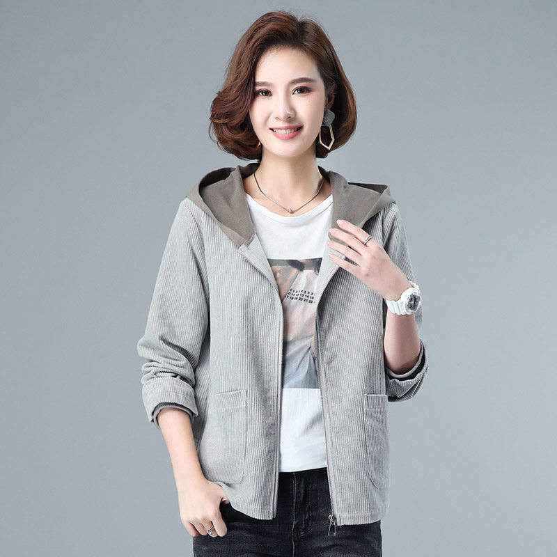 Вельветовая короткая хлопковая куртка для матери, коллекция 2023, осенняя, большой размер