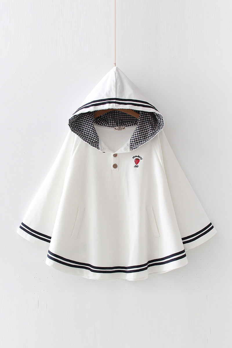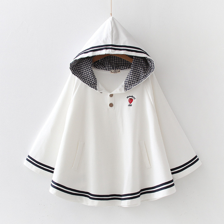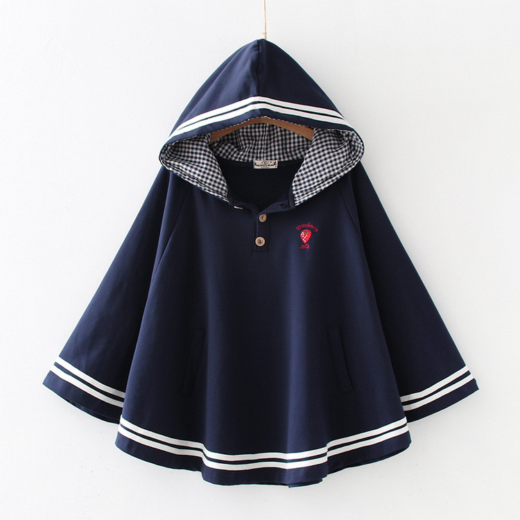Японская милая клубника для школьников и студентов, осенний плащ, толстовка с капюшоном, накидка, с вышивкой