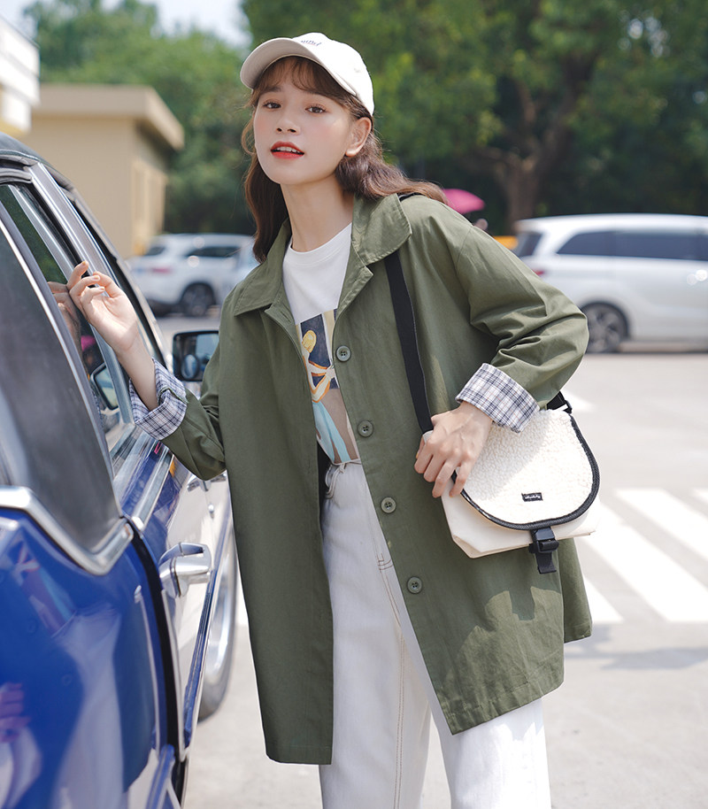 Осенний длинный плащ, куртка, японская бейсбольная форма, средней длины, подходит для подростков, оверсайз