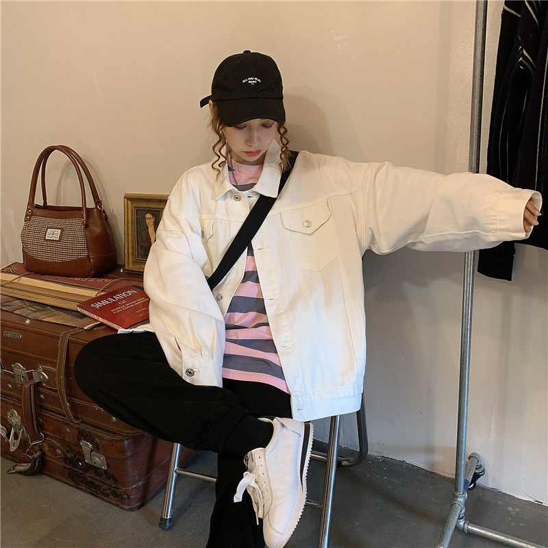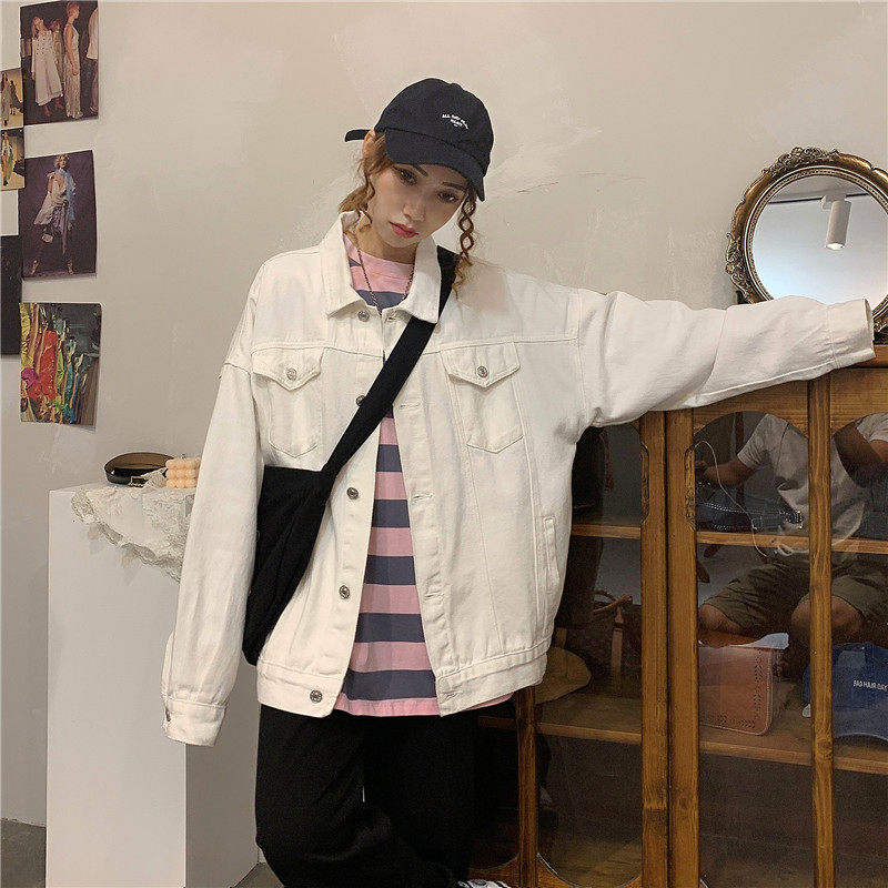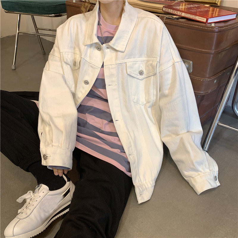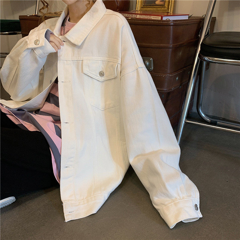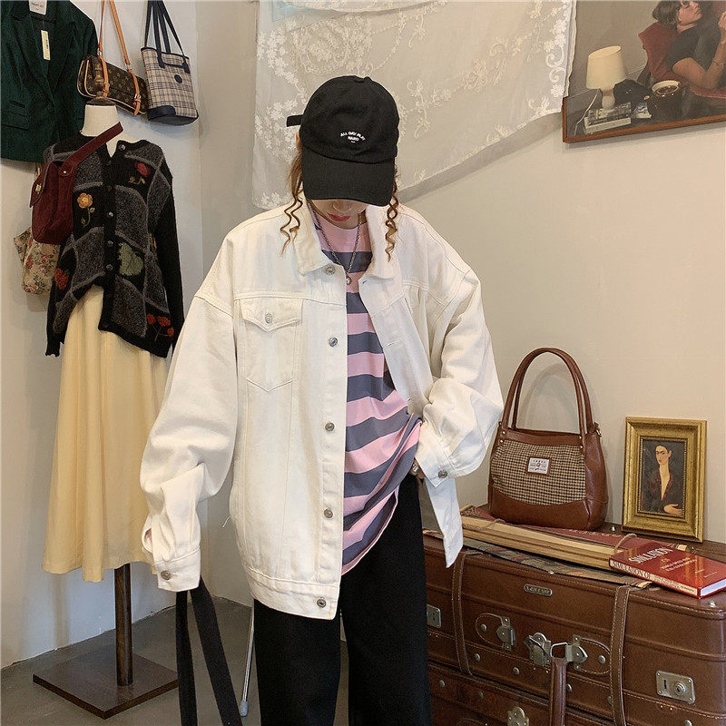 Tide, белая джинсовая осенняя ретро куртка, коллекция 2023, в корейском стиле, оверсайз