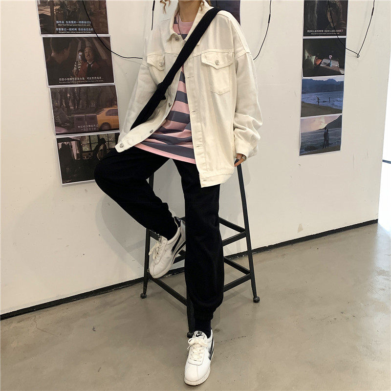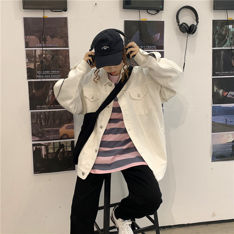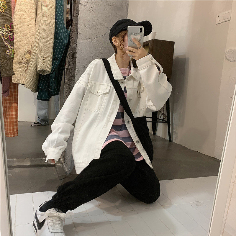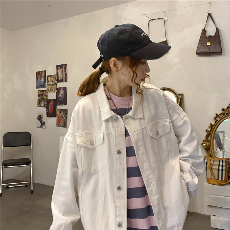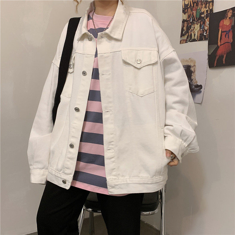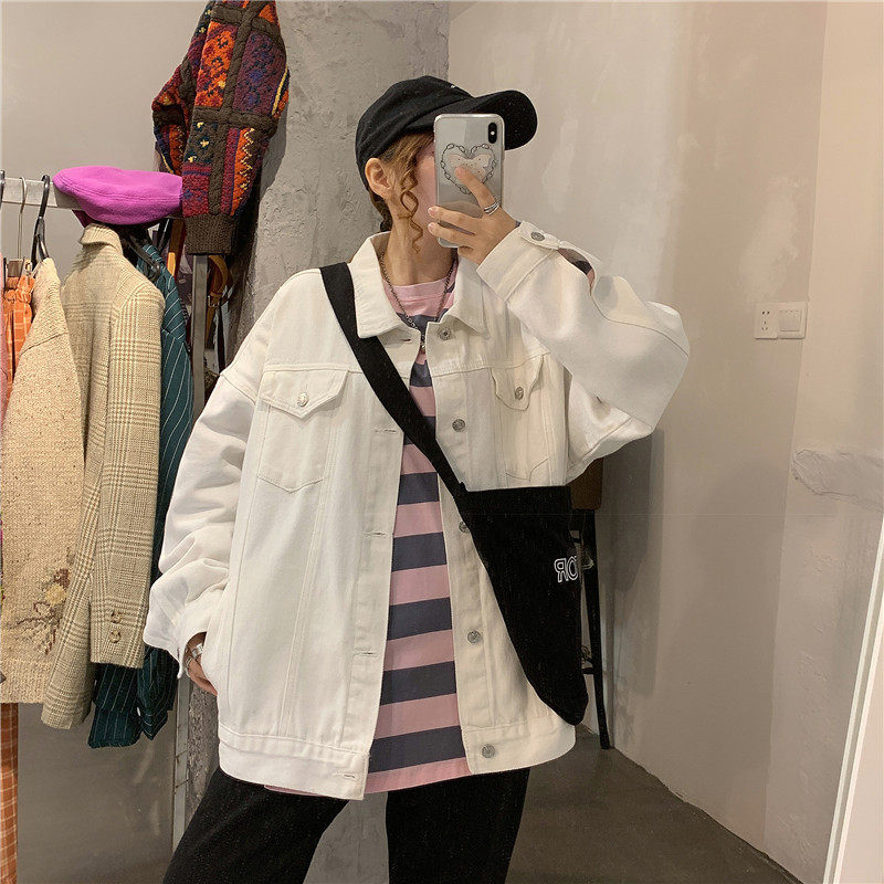 Tide, белая джинсовая осенняя ретро куртка, коллекция 2023, в корейском стиле, оверсайз