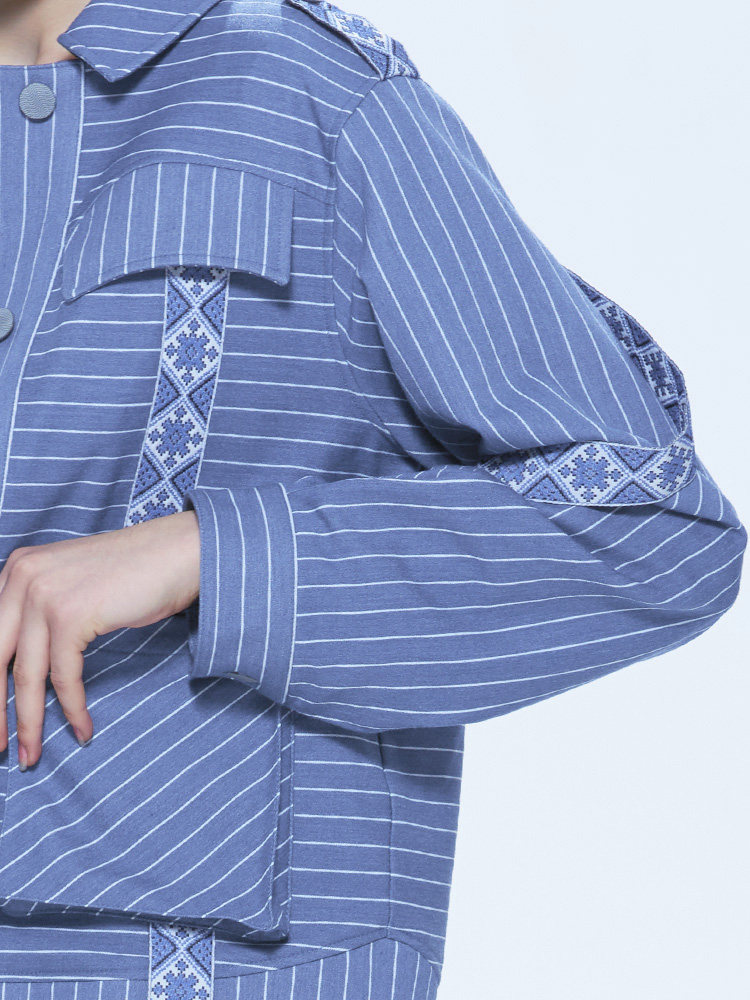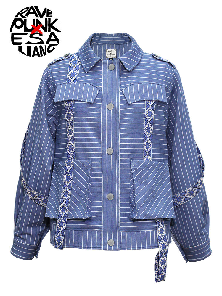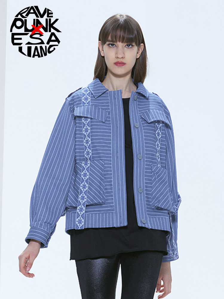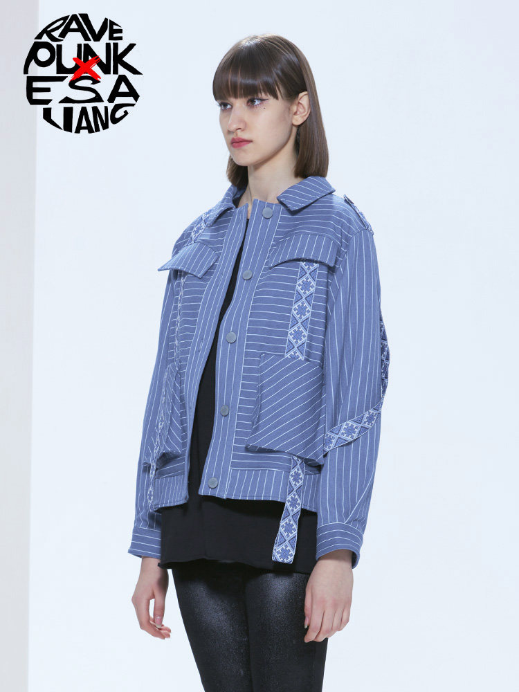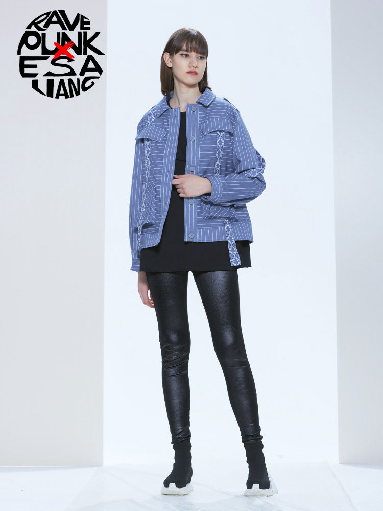 Ретро орган, модная джинсовая осенняя куртка, синий лонгслив