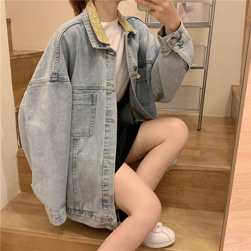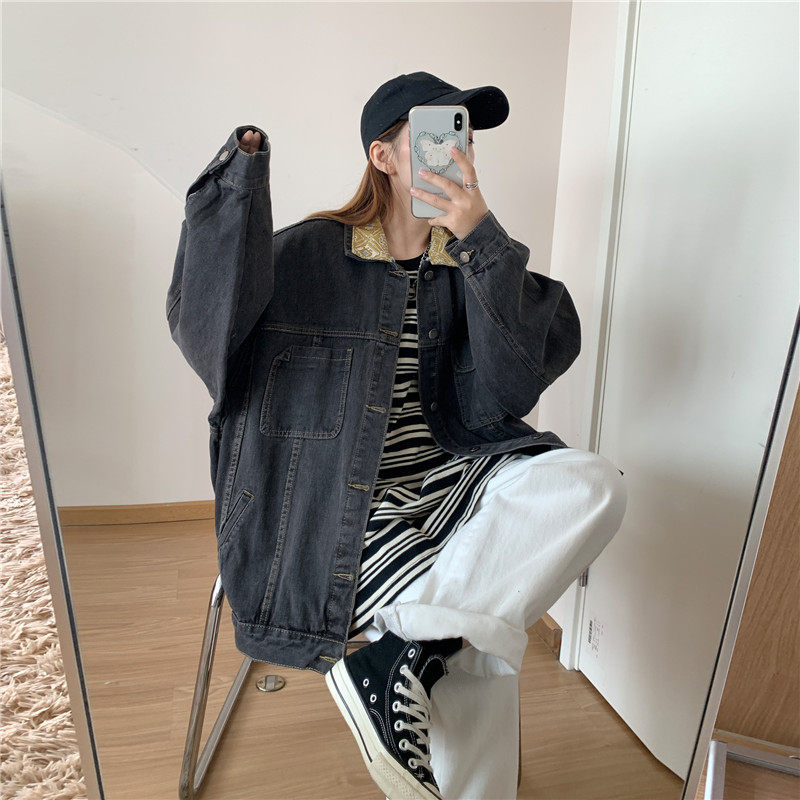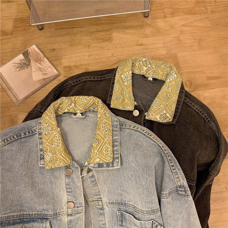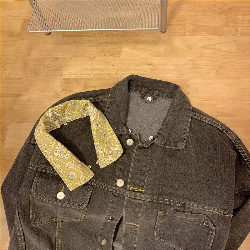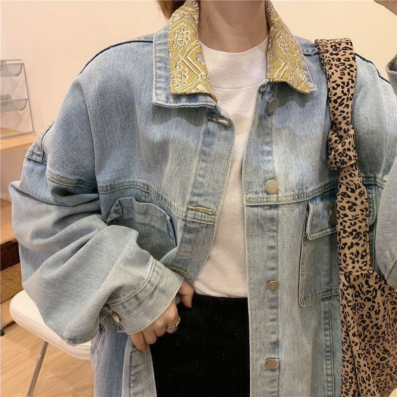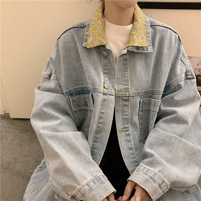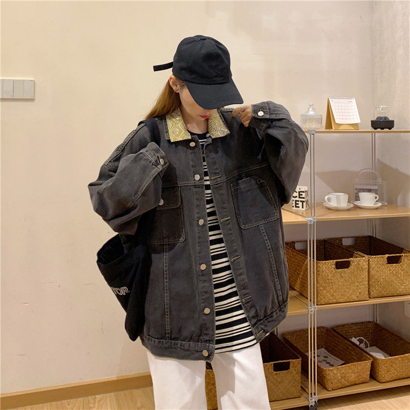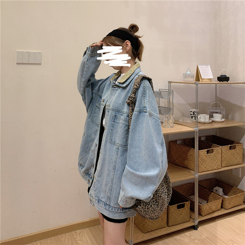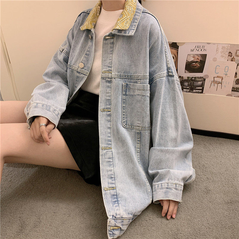 Весенняя джинсовая ретро длинная куртка, коллекция 2023, в корейском стиле, средней длины