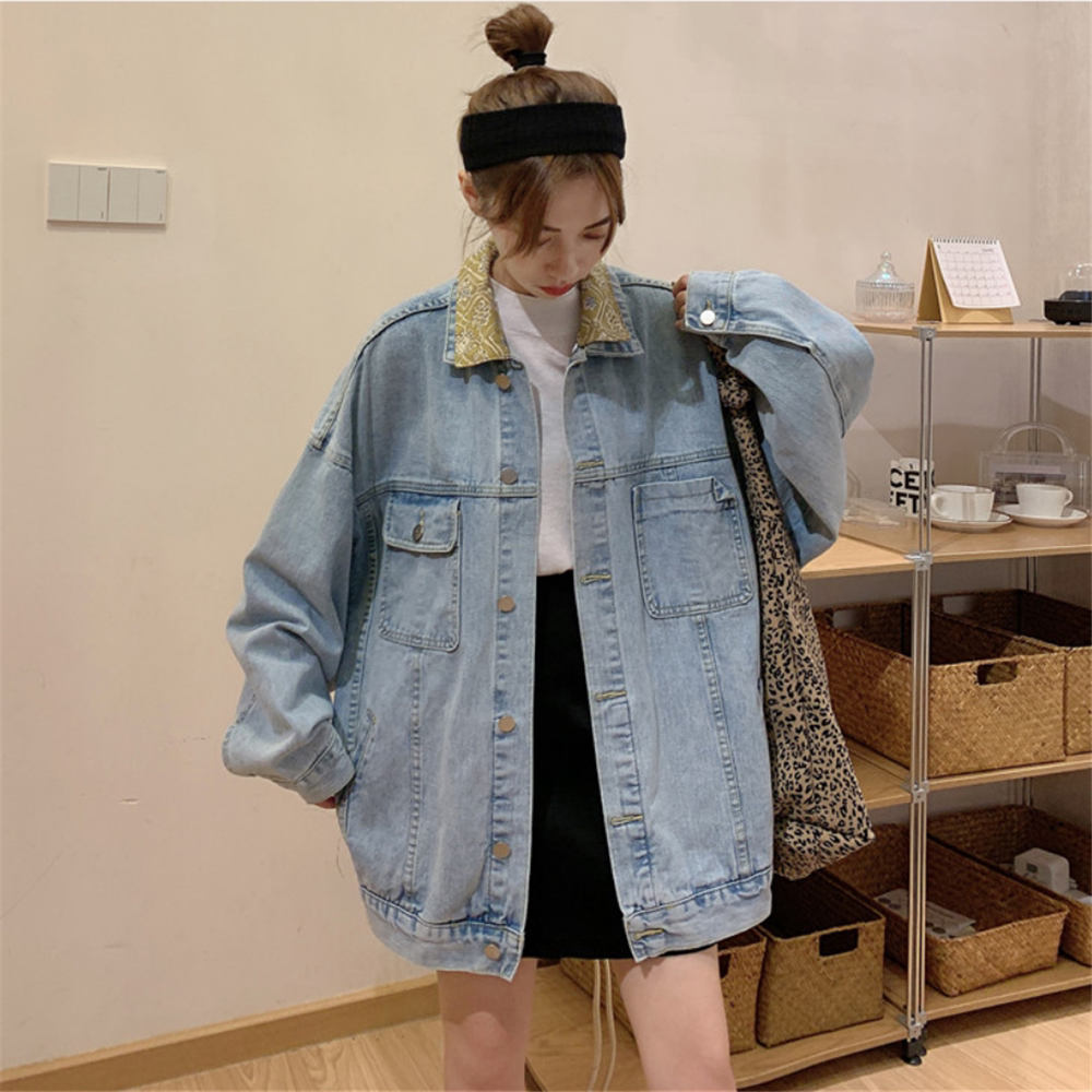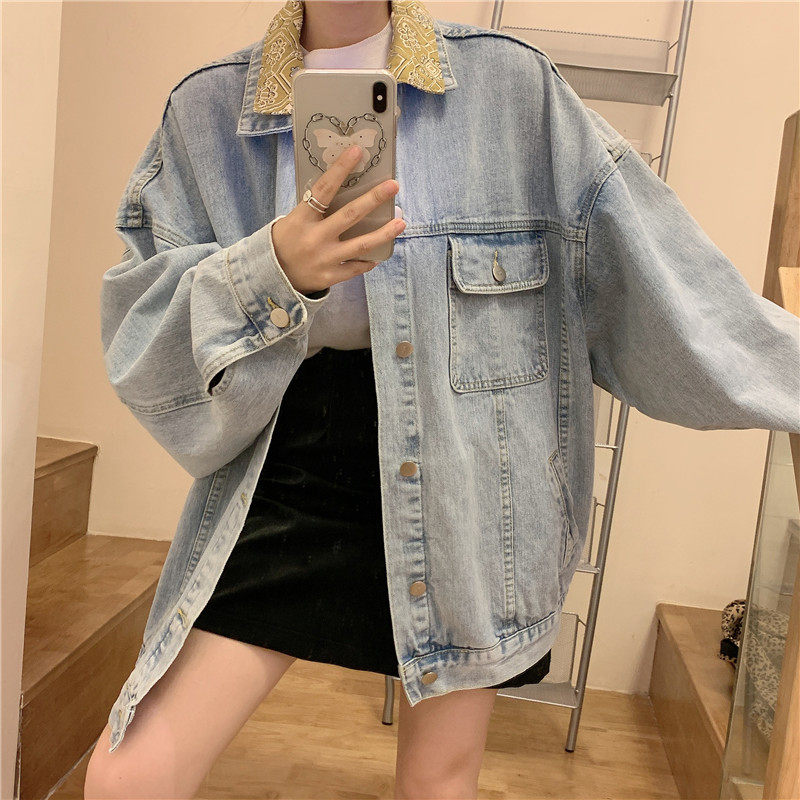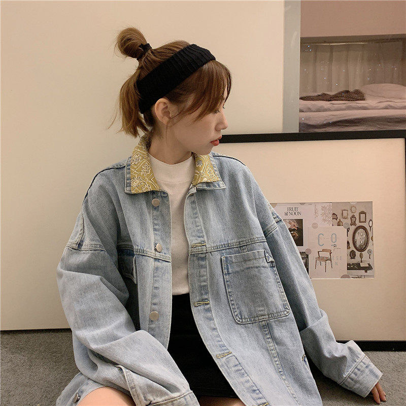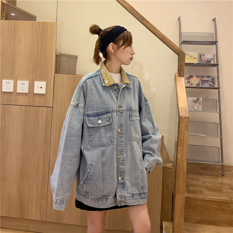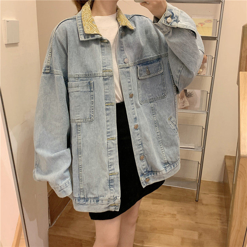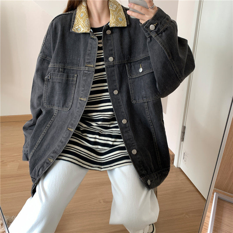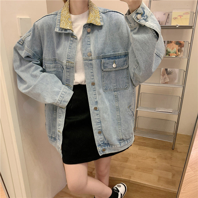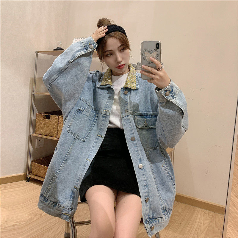 Весенняя джинсовая ретро длинная куртка, коллекция 2023, в корейском стиле, средней длины
