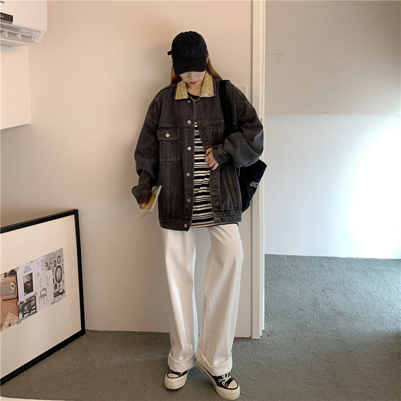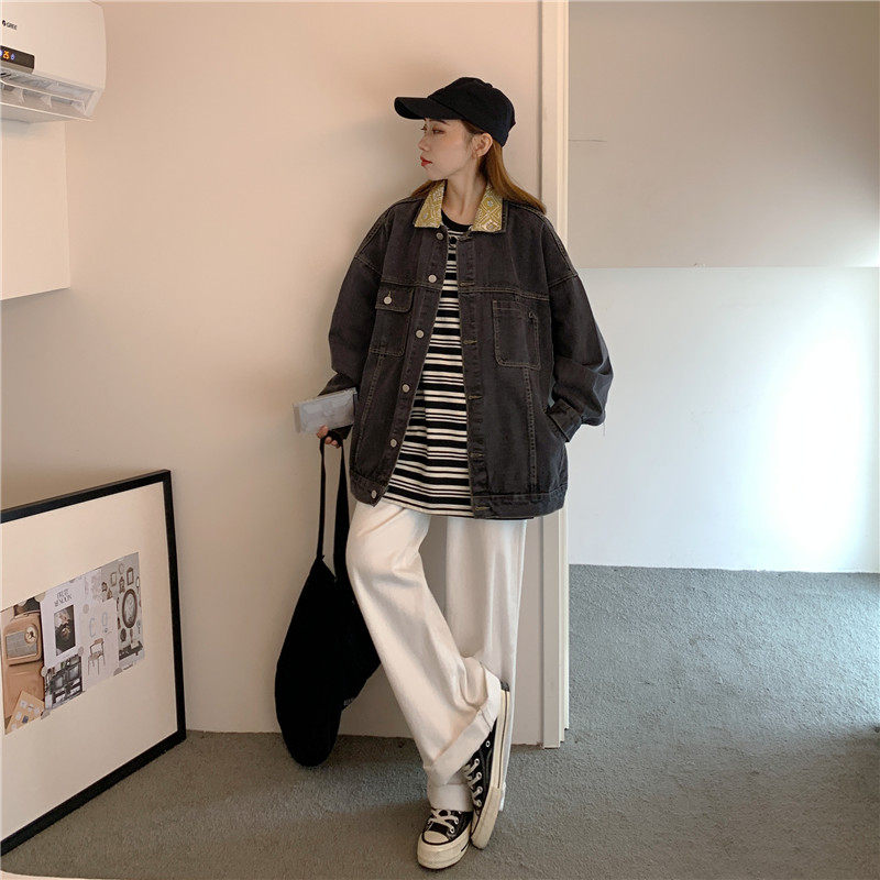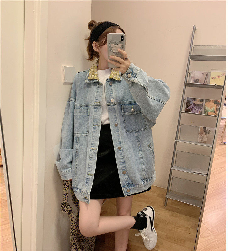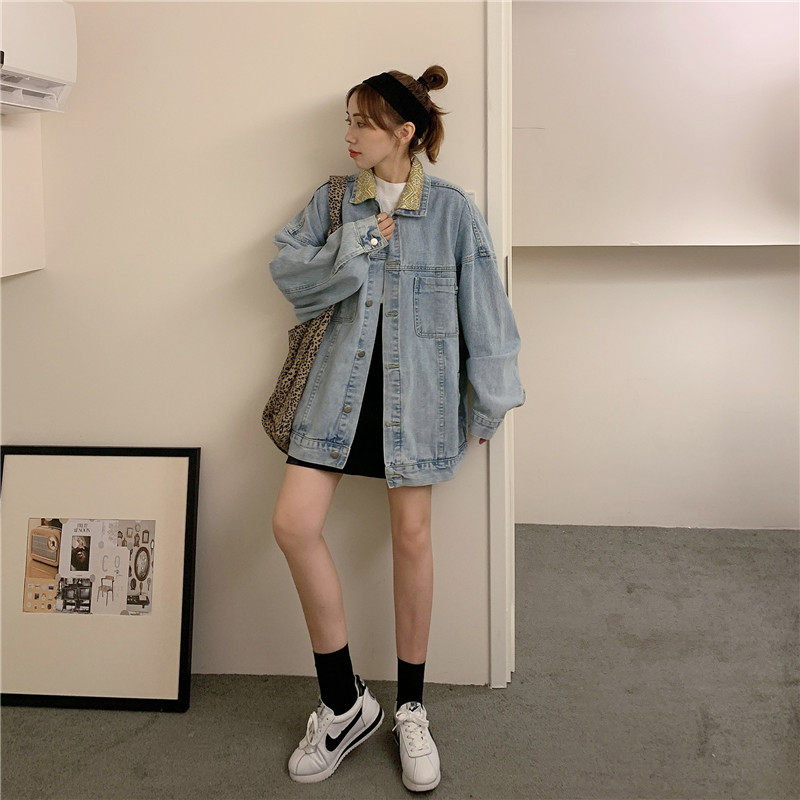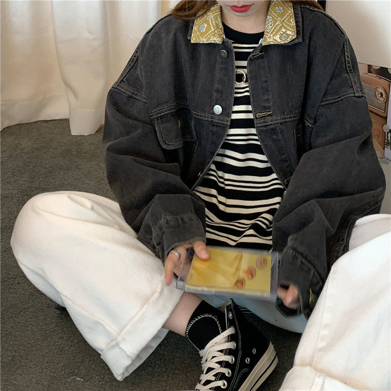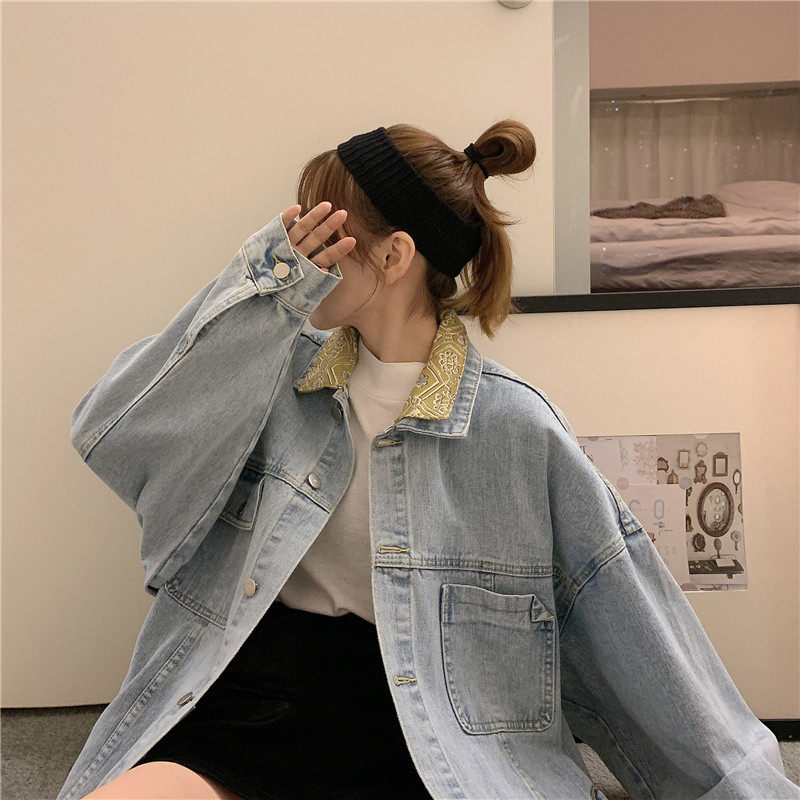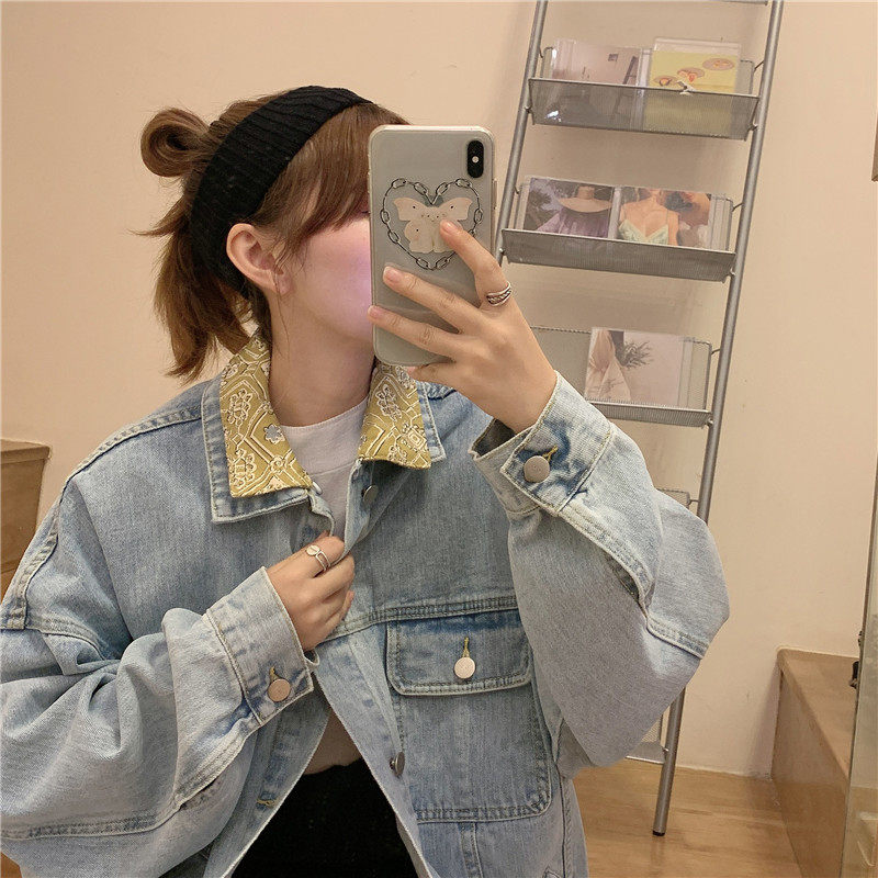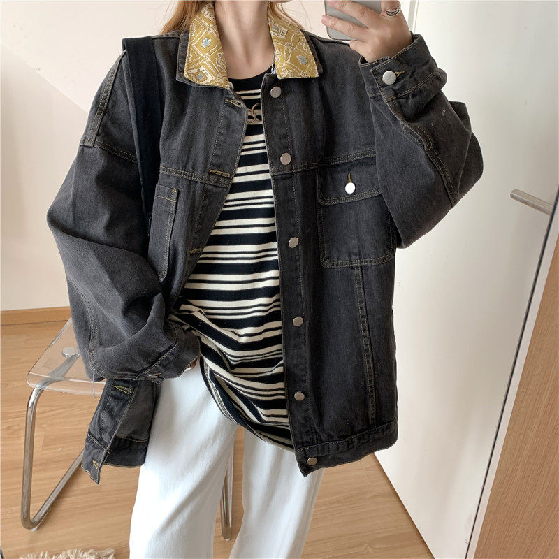 Весенняя джинсовая ретро длинная куртка, коллекция 2023, в корейском стиле, средней длины
