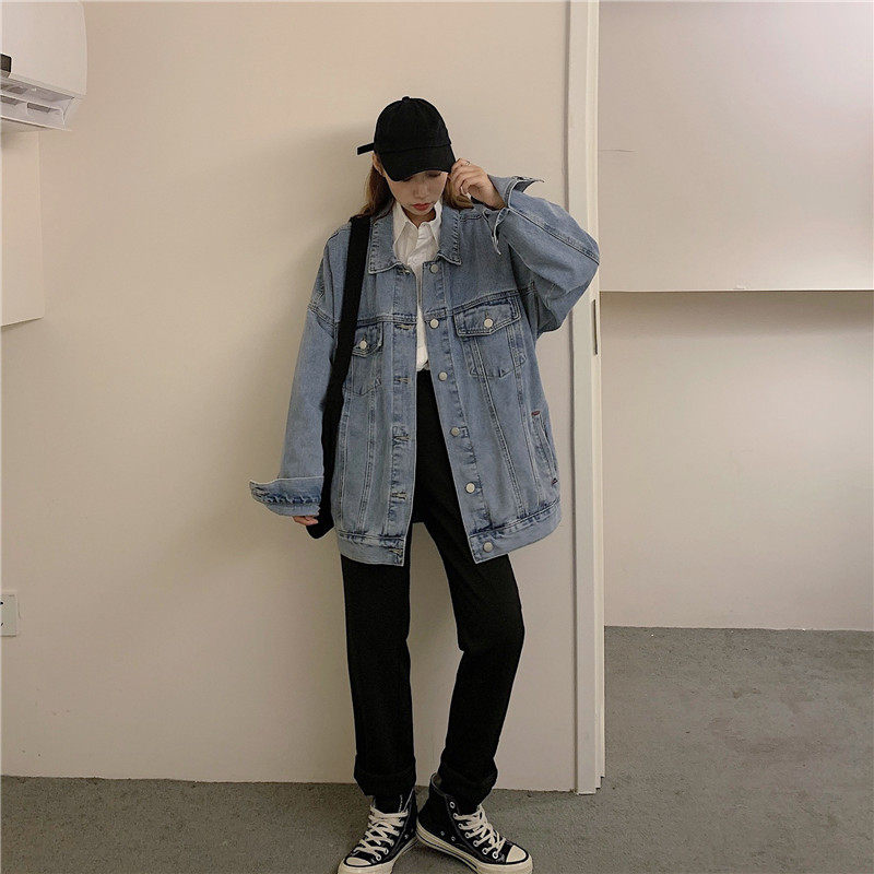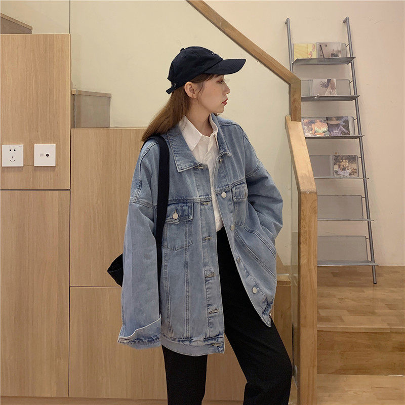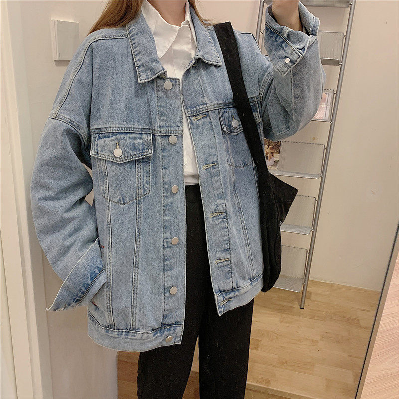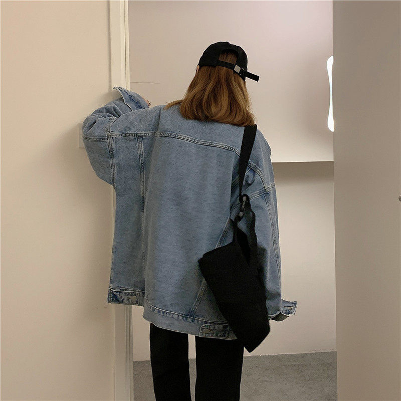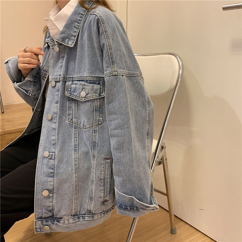 Осенняя длинная ретро джинсовая куртка, коллекция 2022, средней длины, для влюбленных, оверсайз