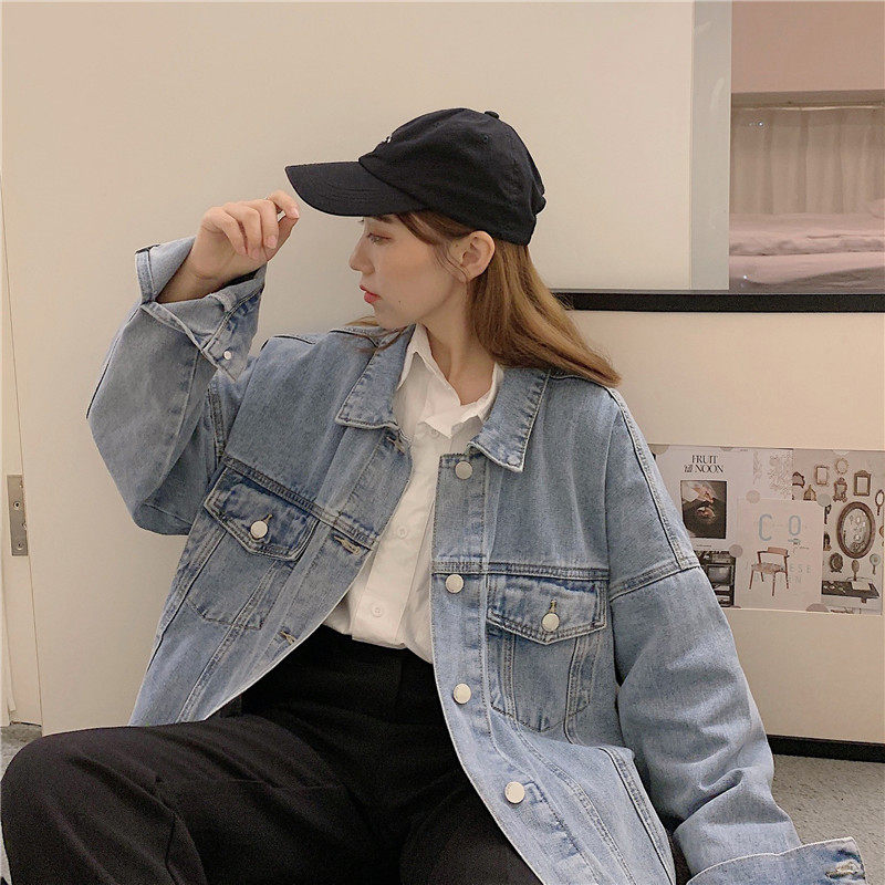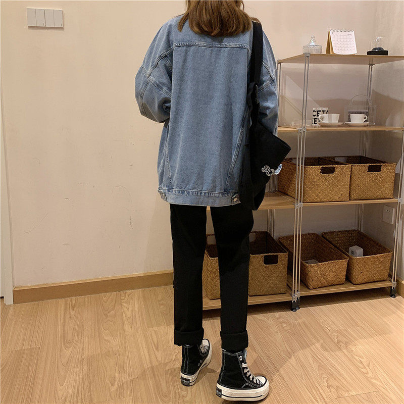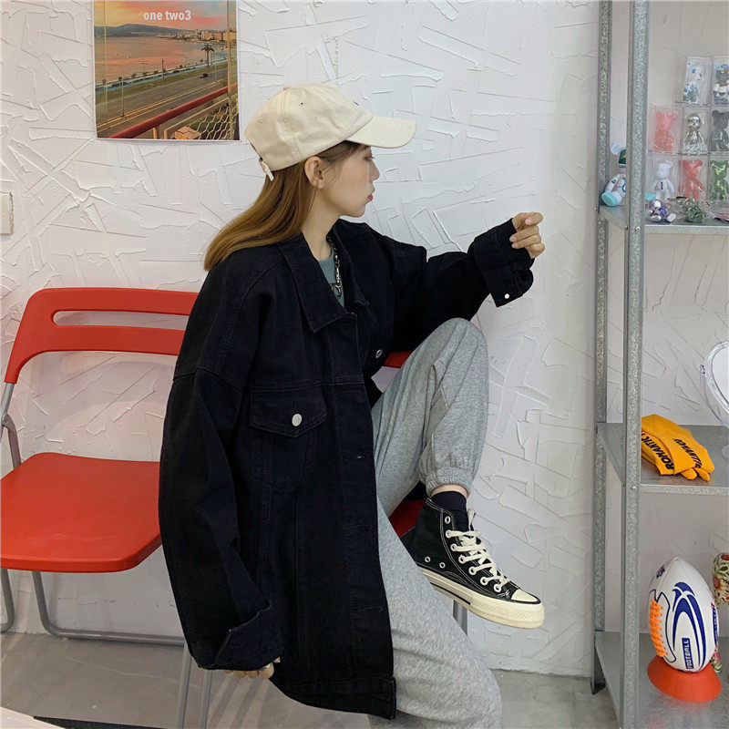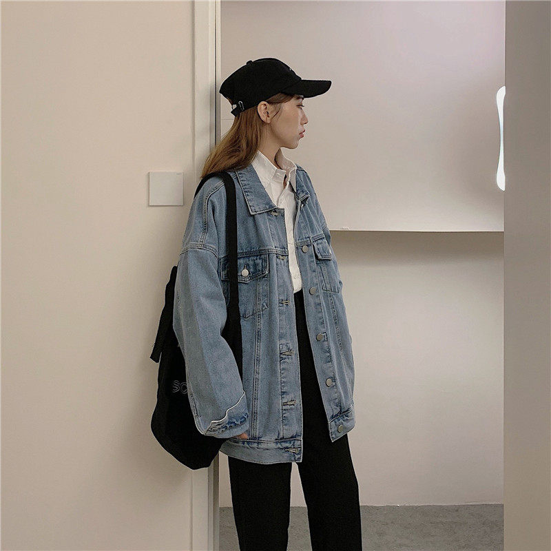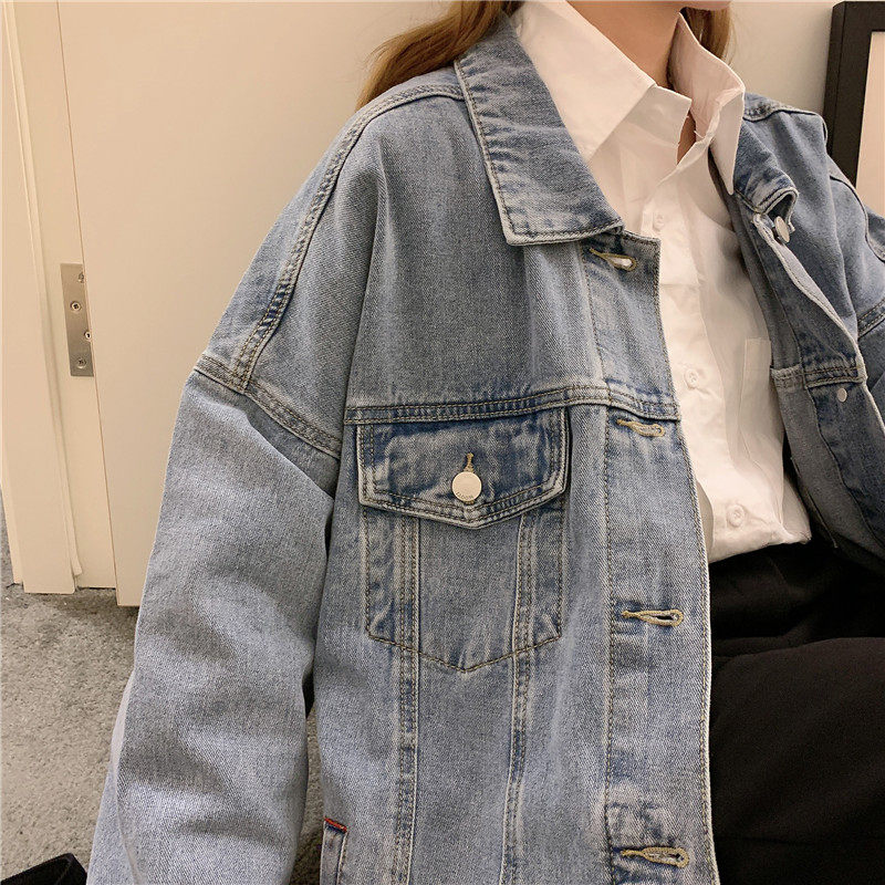 Осенняя длинная ретро джинсовая куртка, коллекция 2022, средней длины, для влюбленных, оверсайз
